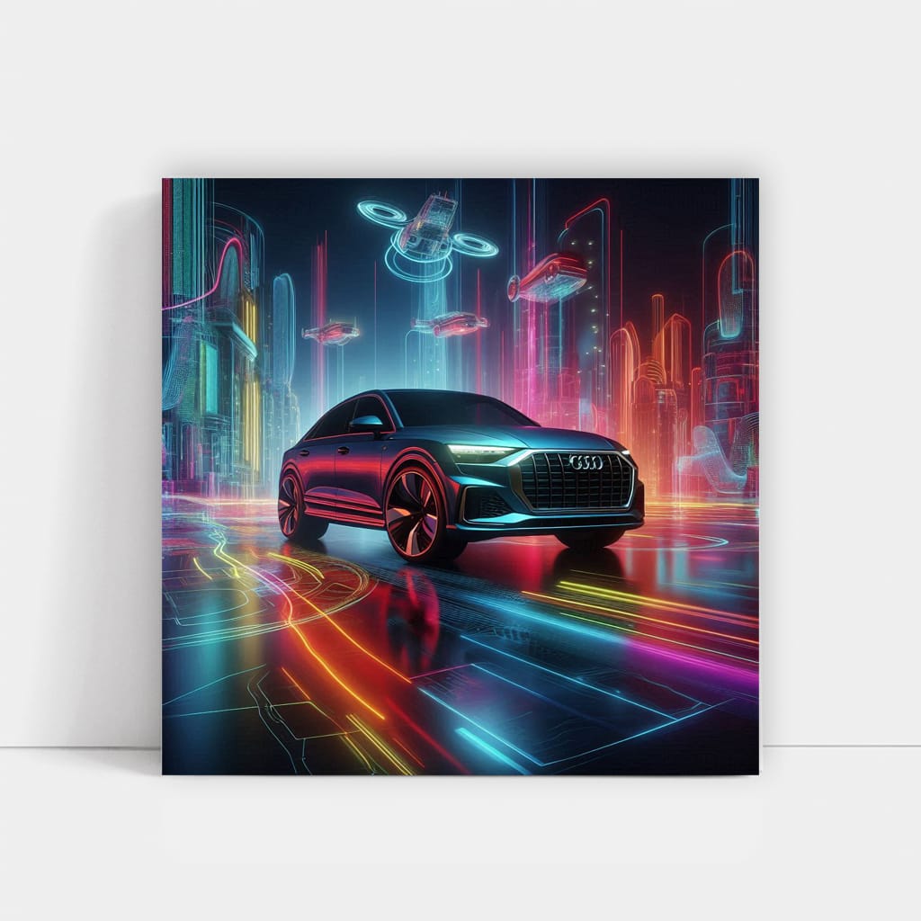 Imagine this: you are in a garage, the engines are roaring around you, and on the wall there is a poster of an Audi Q8 in an abstract style. This is not just a painting, it is a piece of the automotive soul, wall art for true fans of speed. Bold design for bold drivers. See more from the collection: Audi Art