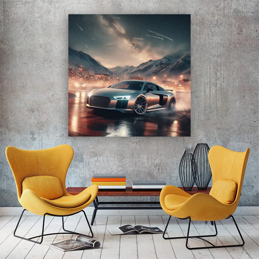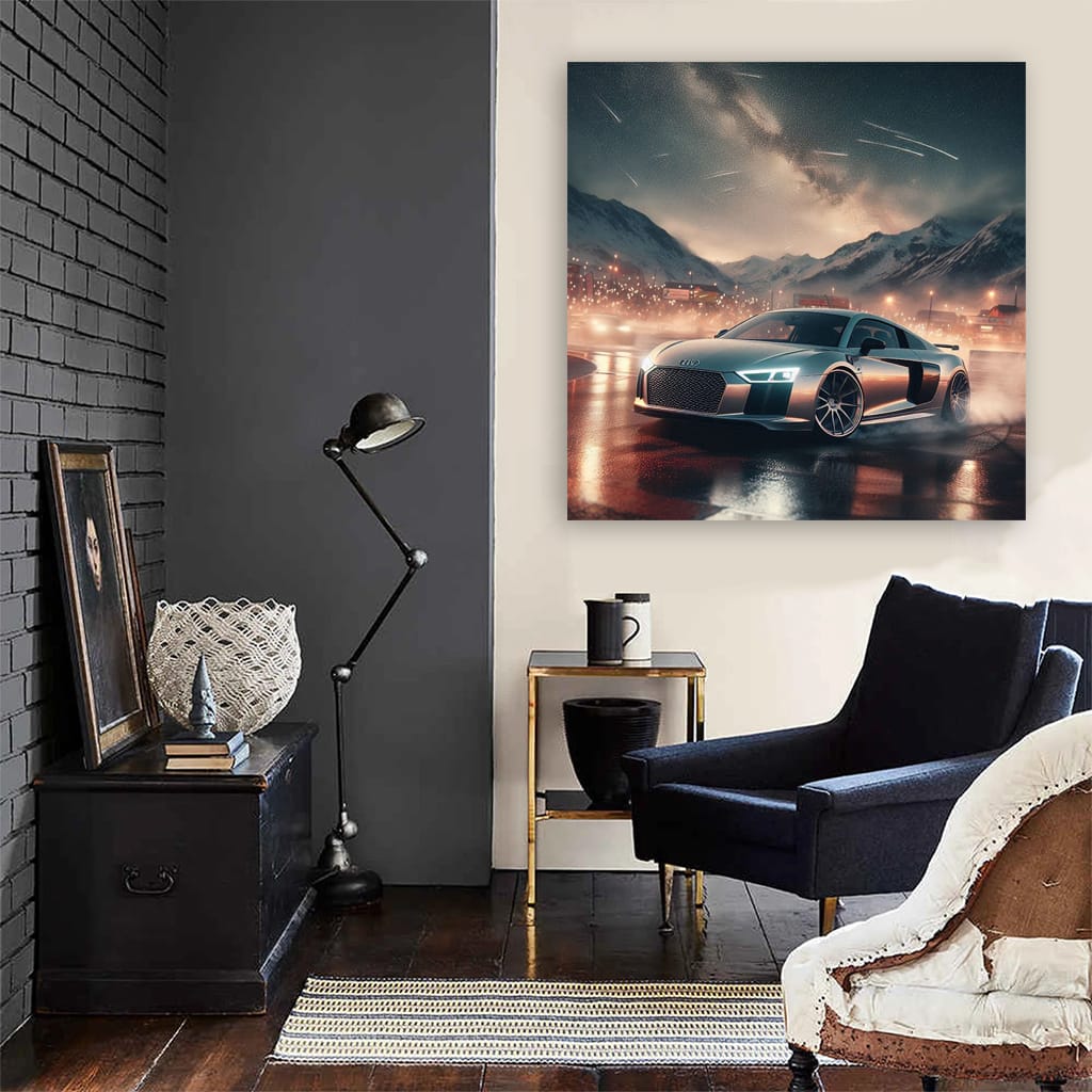 What a poster! An Audi R8 drifting like a mad beast right on the wall. The painting seems to come to life: the roar of the engine and the smell of burnt rubber - all this in your room. Wall art for those who appreciate speed and adrenaline. See more from the collection: Audi Art