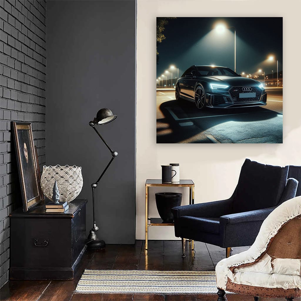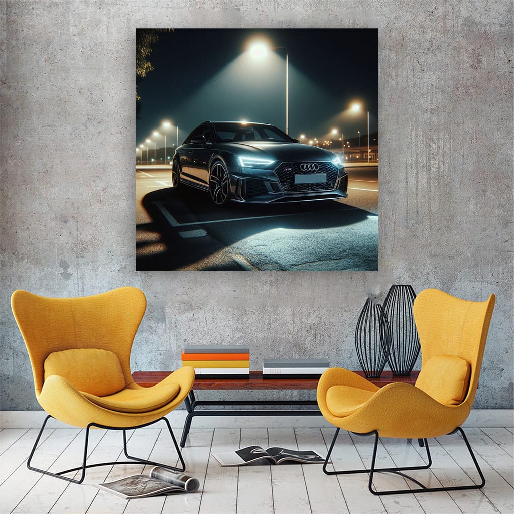 This painting is just a cannon! The poster with Audi RS4 at night is pure adrenaline on the wall. This is wall art for those who appreciate power and style. A modern masterpiece for true car fans who know what real speed and drive are. See more from the collection: Audi Art