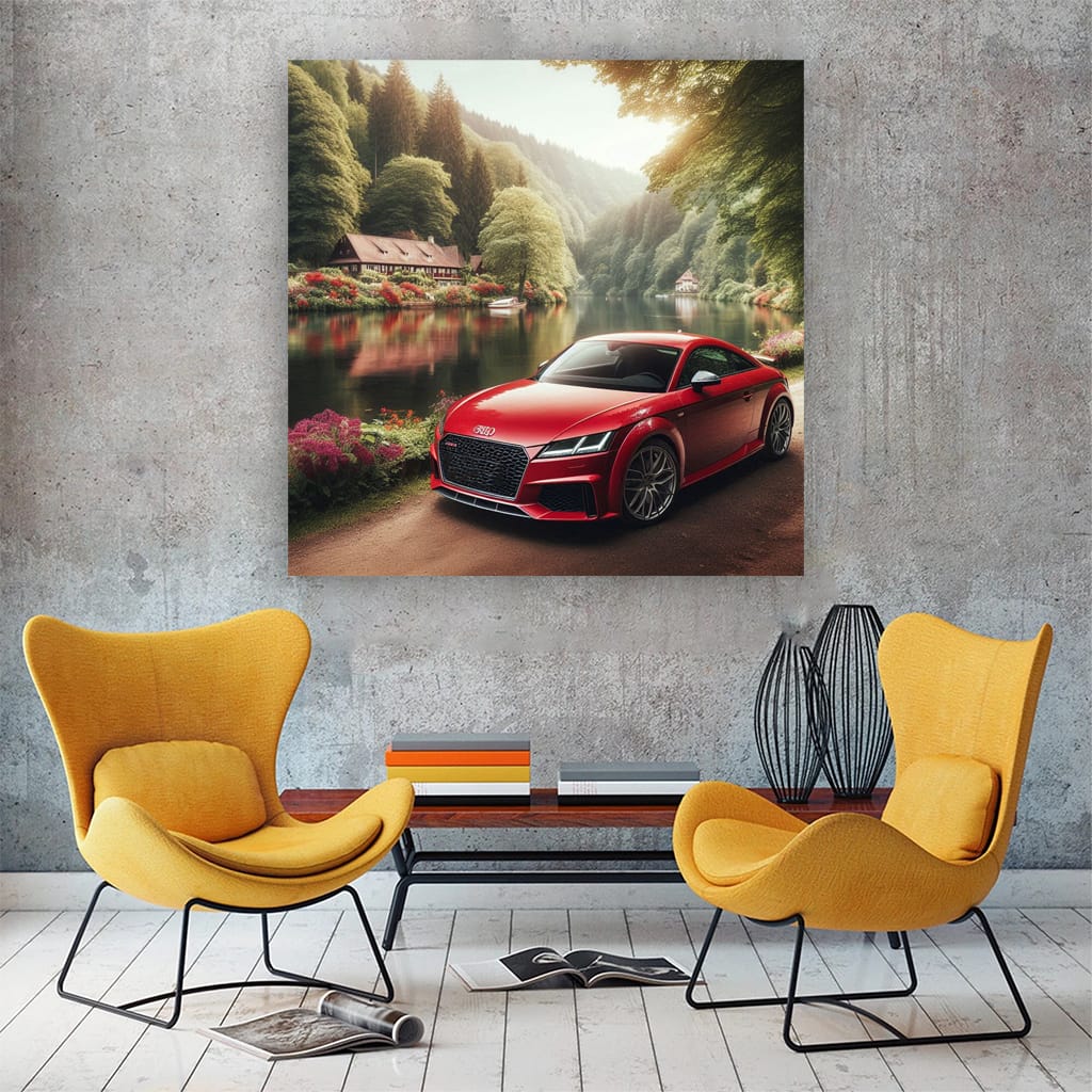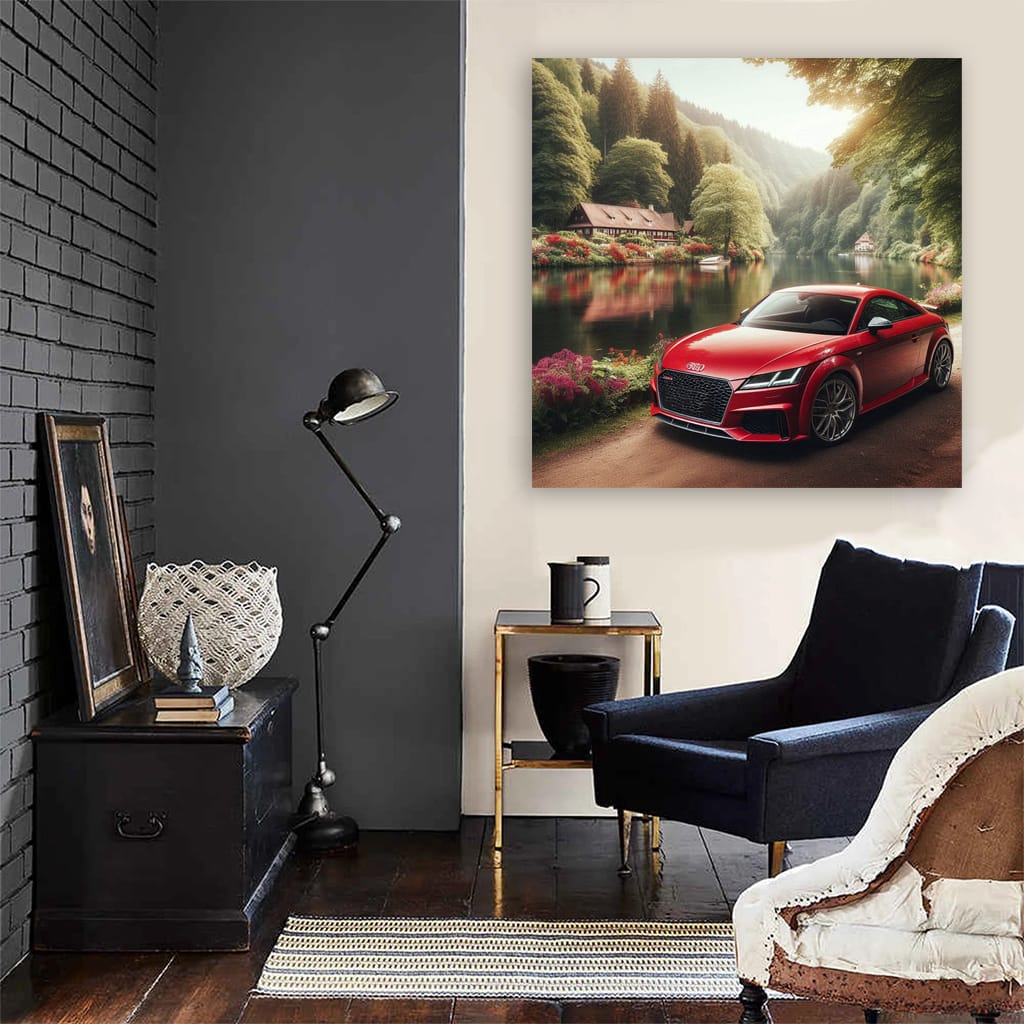 Hey bro! See that painting on the wall? It's an Audi TT RS tearing up the river like crazy. Mind blowing wall art! A poster that really conveys the power and style of the car. This kind of art is a must have for anyone who lives for cars. See more from the collection: Audi Art