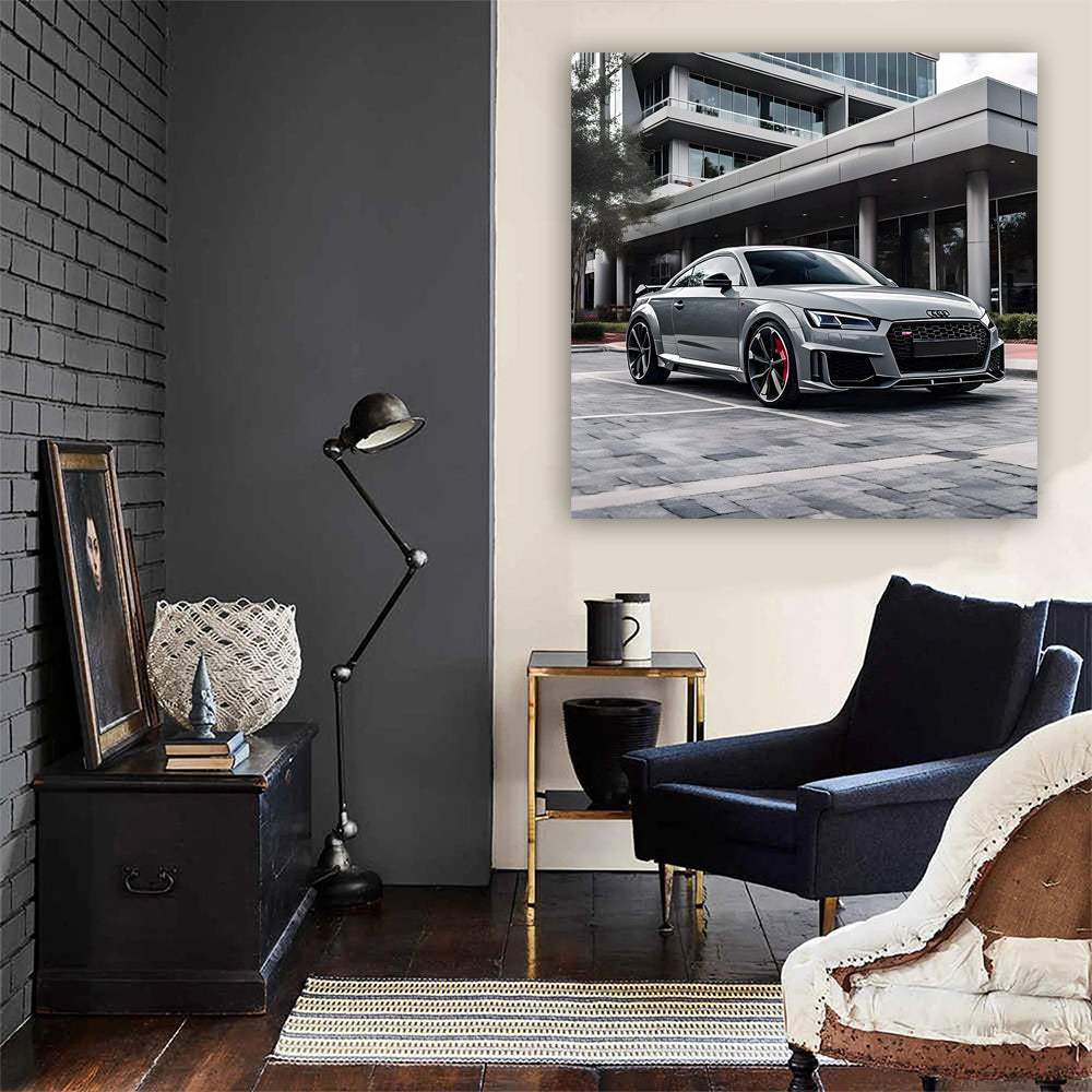 Yo, guys, have you seen this painting? This wall art with the Audi TT RS in gray is just fire! The poster looks like the car is ready to take off and leave everyone behind. Seriously, this is a decoration for any wall, worthy of a true car fan. See more from the collection: Audi Art