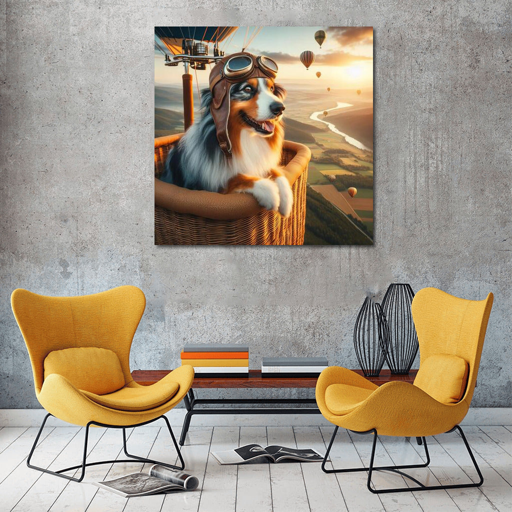 Australian Shepherd in the Sky: Hot Air Balloon Ride Wall Art