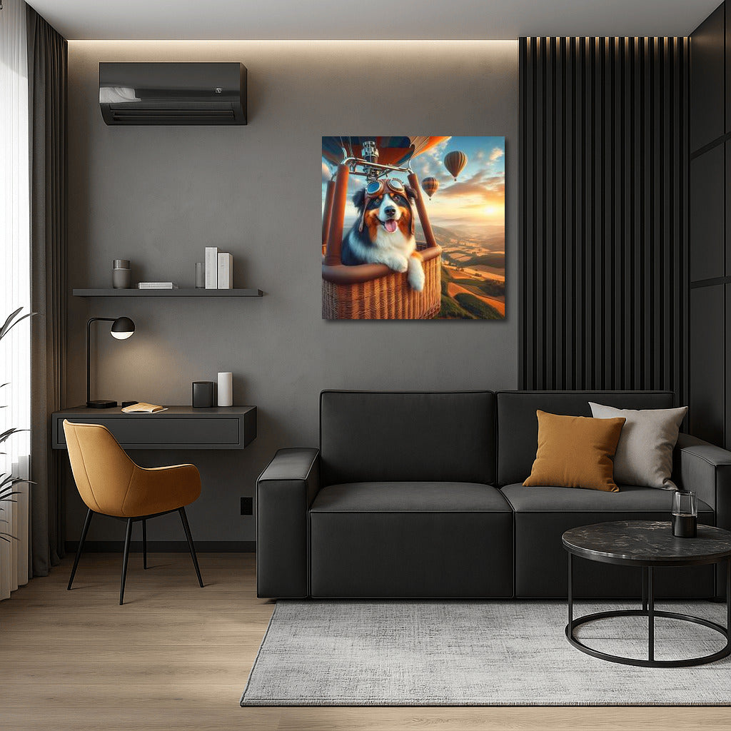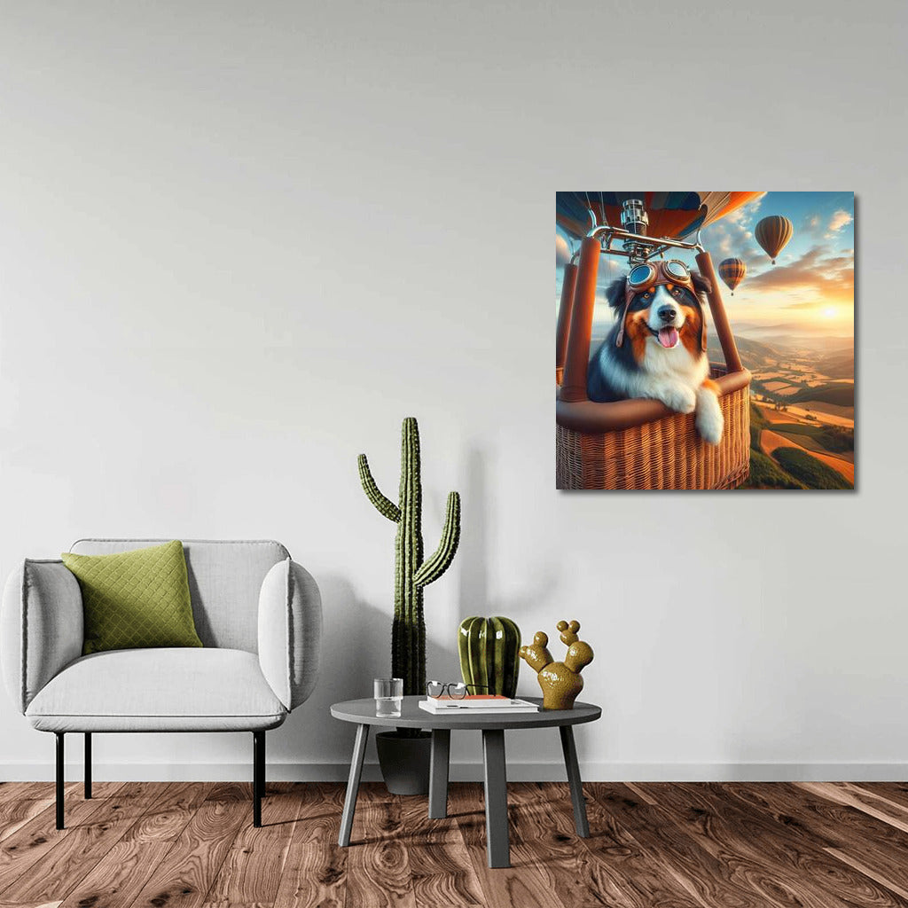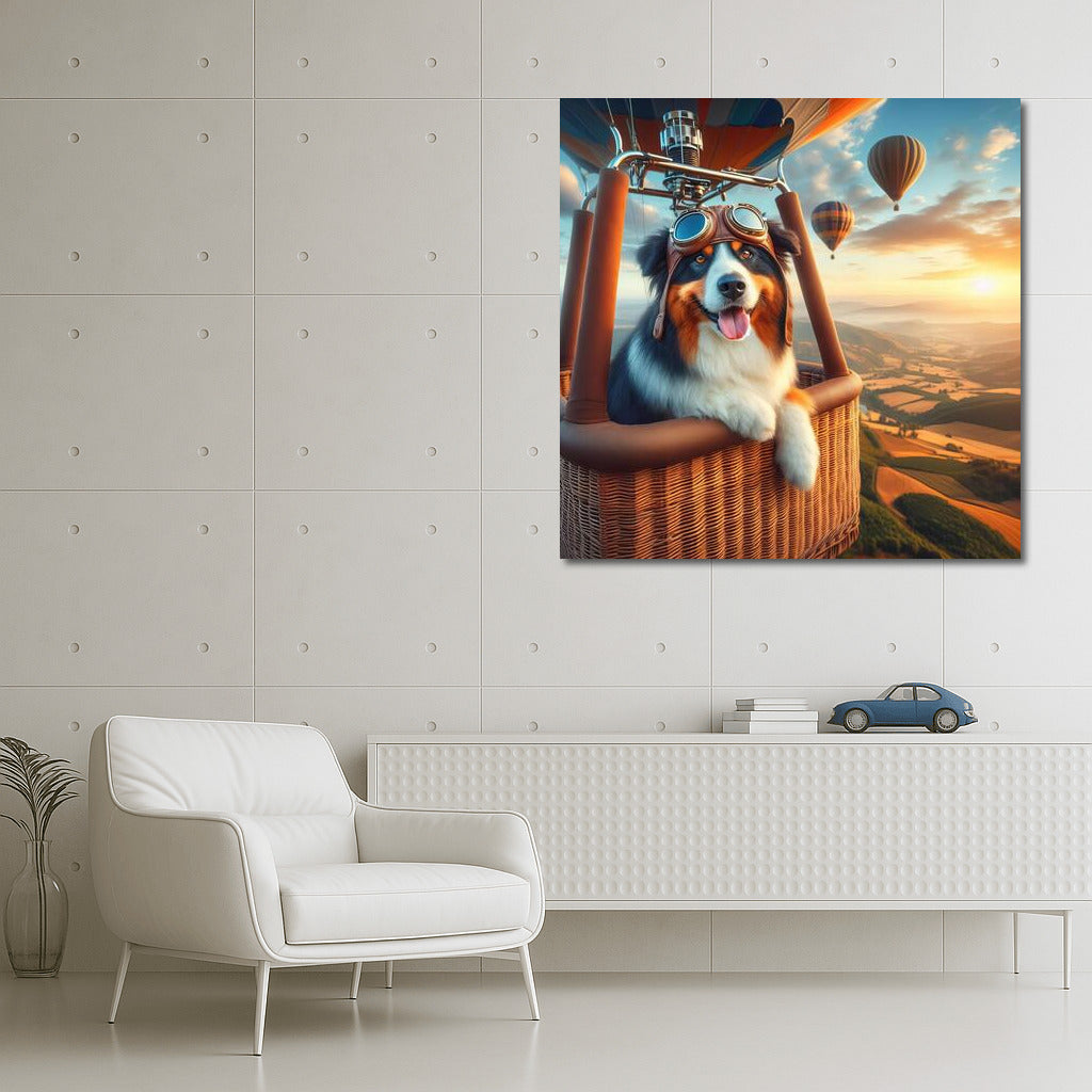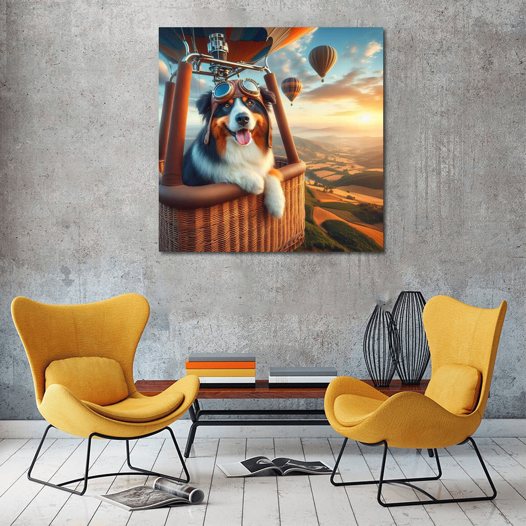 Australian Shepherd Pilot Takes Hot Air Balloon Flight: Scenic Journey Wall Art