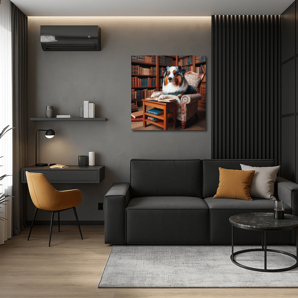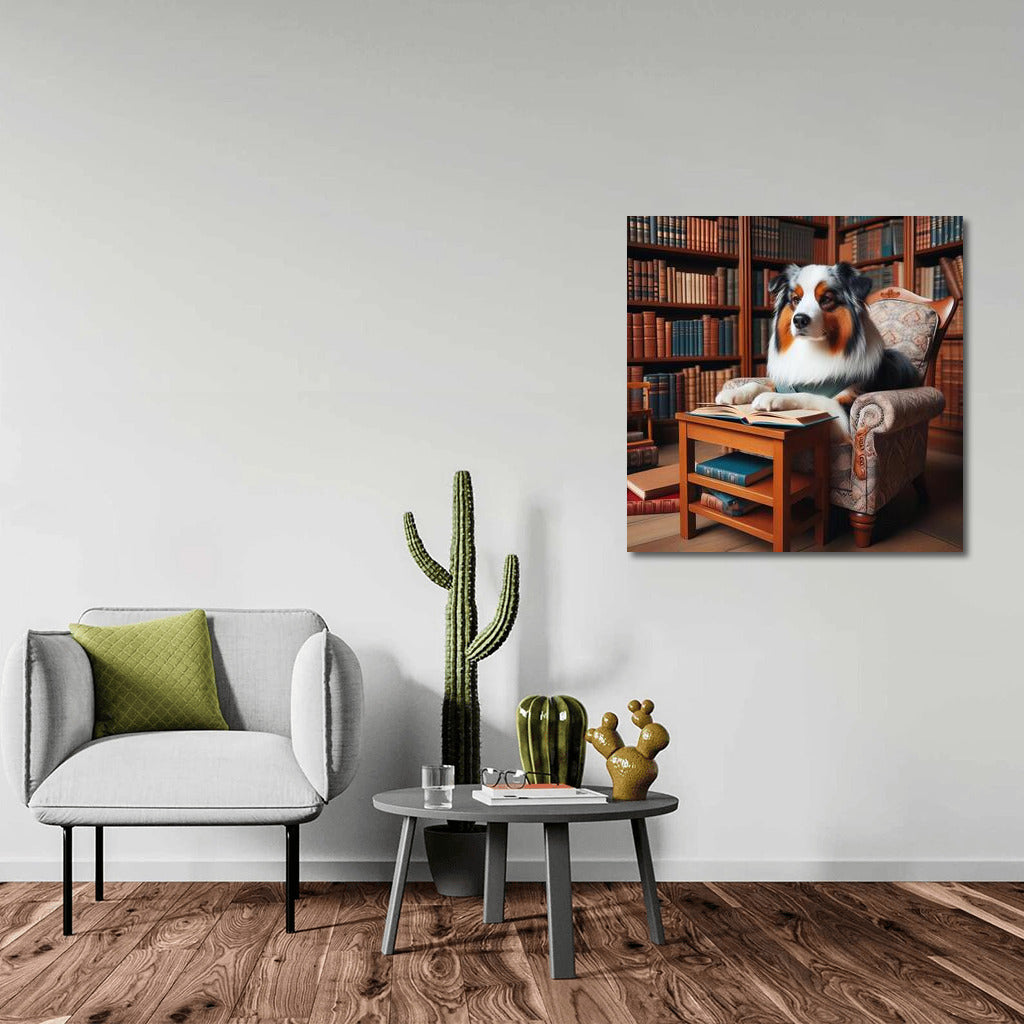 Australian Shepherd Reading in the Library: Comfort and Humor for Dog and Book Lovers Wall Art
