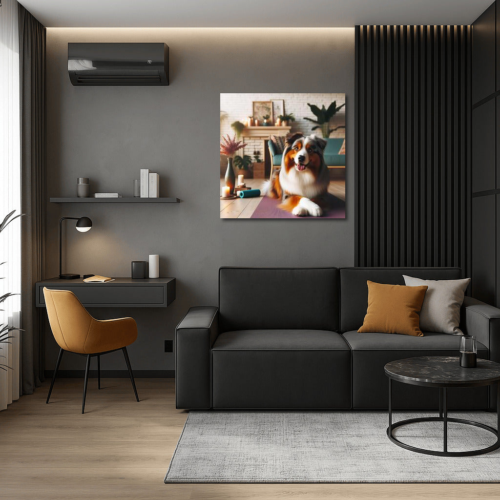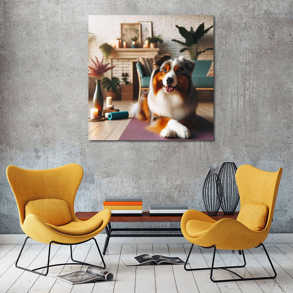 Australian Shepherd: Yoga and Comfort in a Green Oasis Wall Art