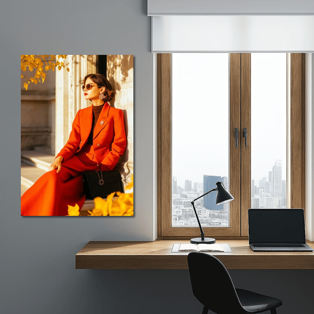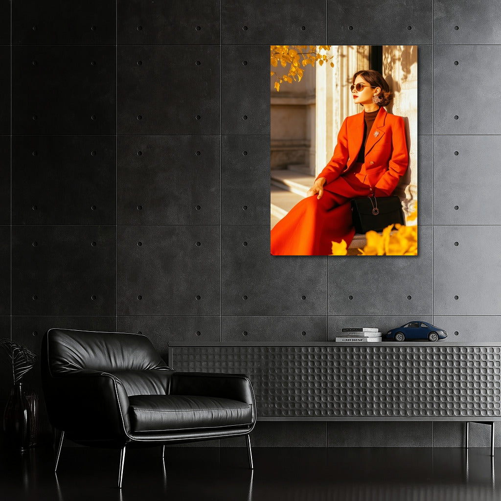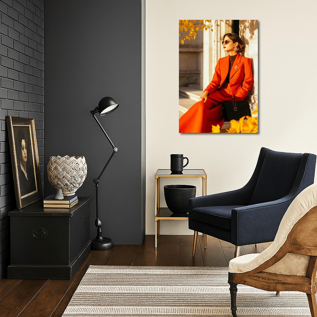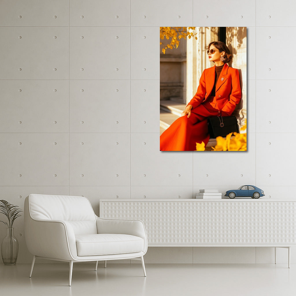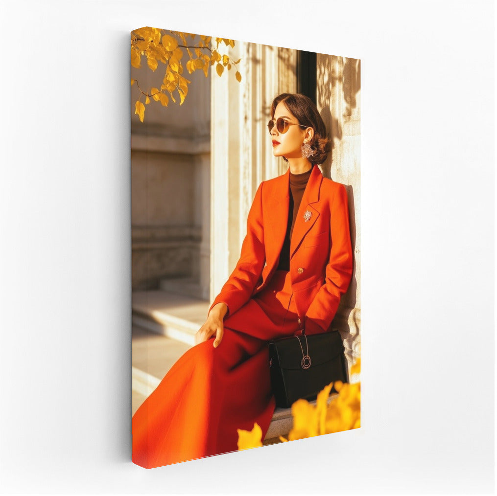 Bright painting with an elegant figure in autumn colors. Modern wall art for a stylish interior. See more from the collection: Wall Art with Women
