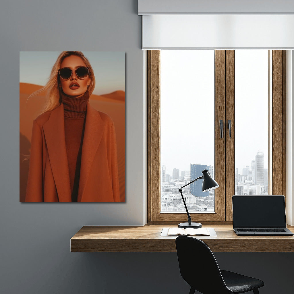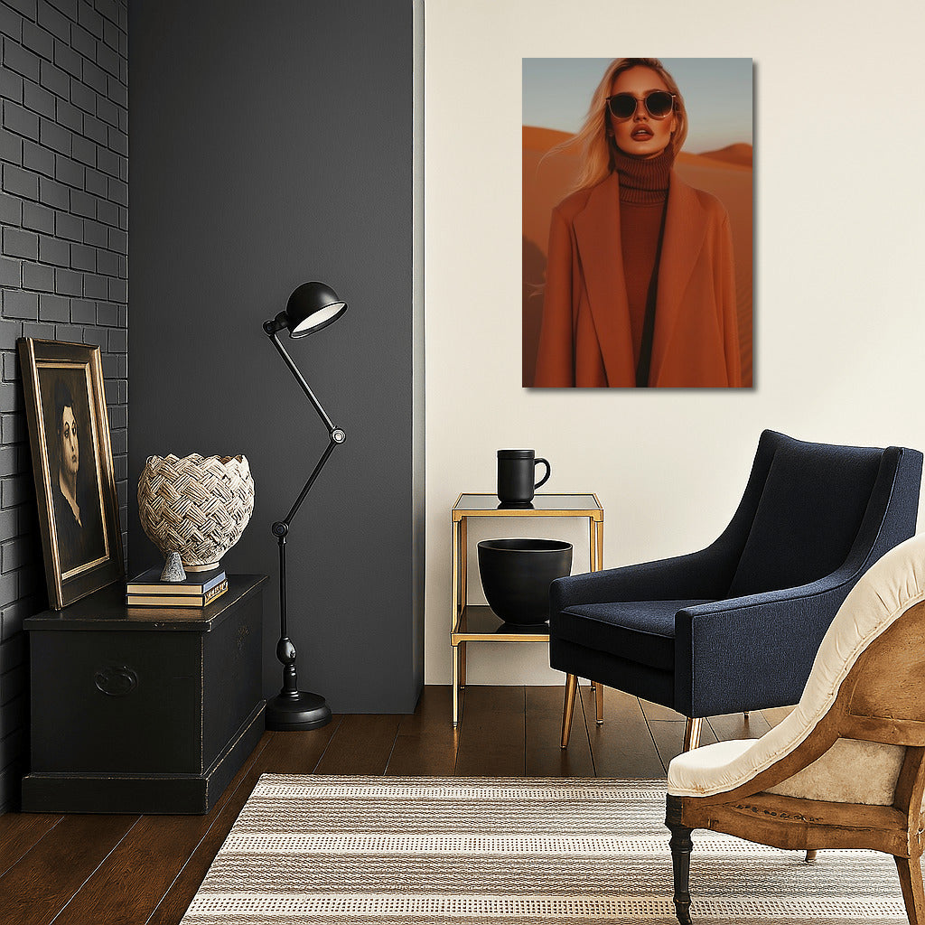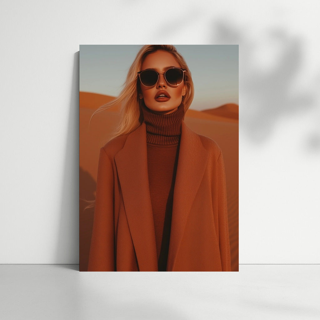 Amazing painting: figure in the desert at dawn. This wall art will fill your interior with mysterious elegance. See more from the collection: Wall Art with Women