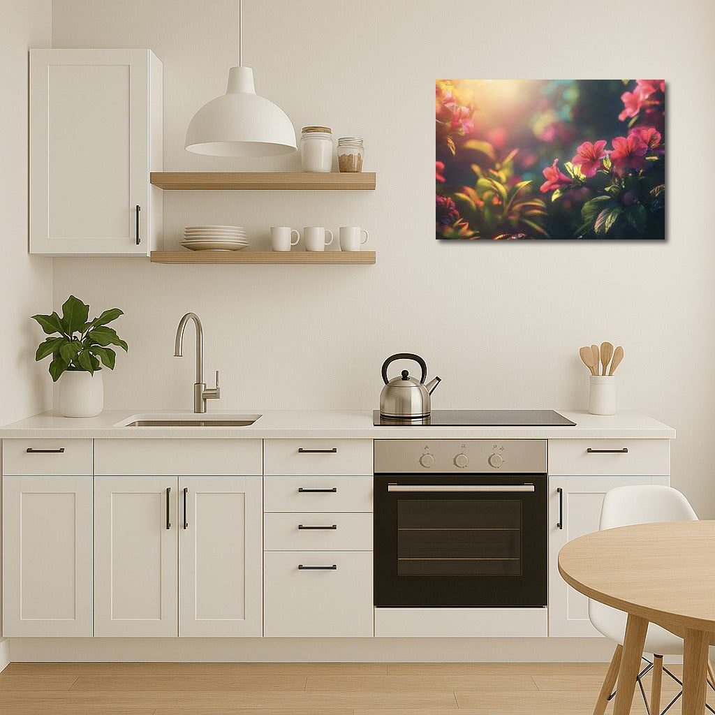 Bright watercolor poster with azalea flowers from a Japanese garden. Art that brings harmony and tenderness to your home. See more from the collection: Flowers Art