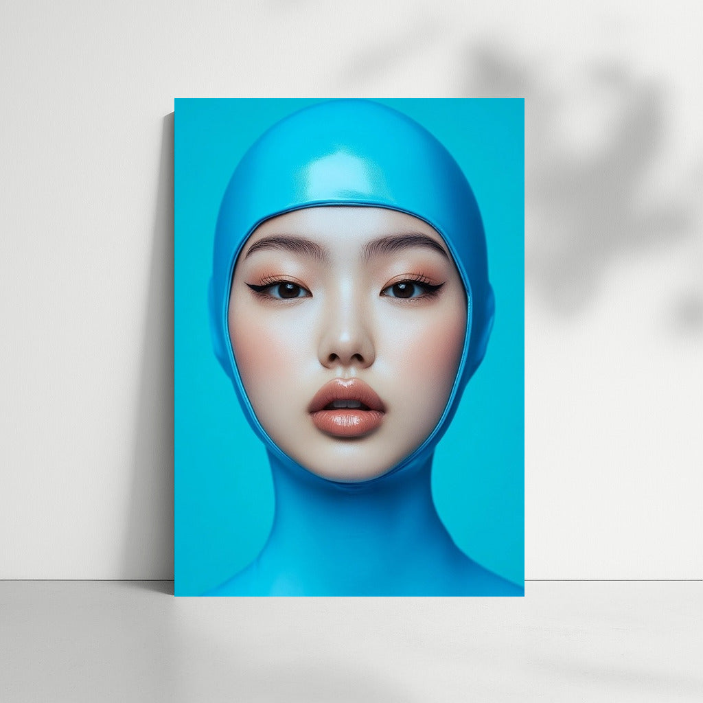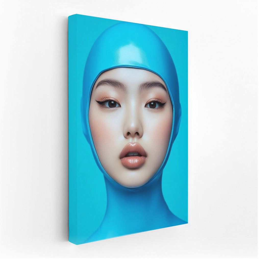 Futuristic painting: abstract portrait in azure palette. Modern wall art for inspiration and style. See more from the collection: Wall Art with Women
