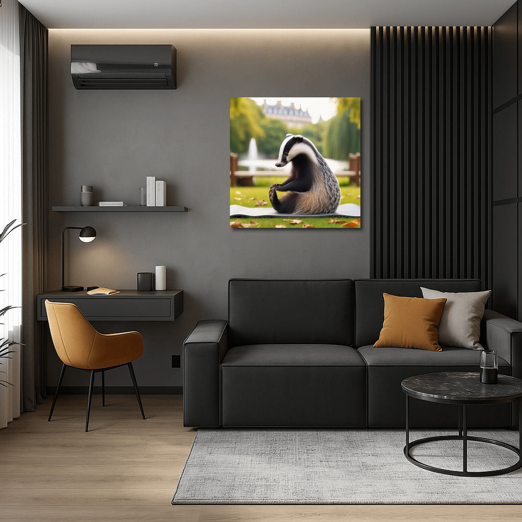 Badger on a Yoga Mat: Peace and Inspiration in the Park Wall Art