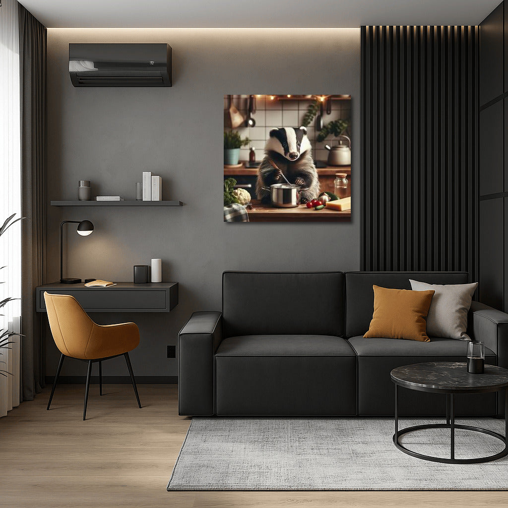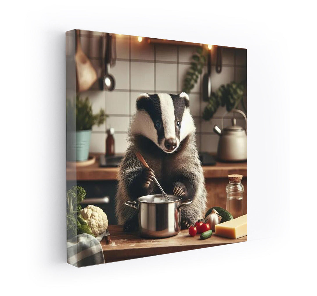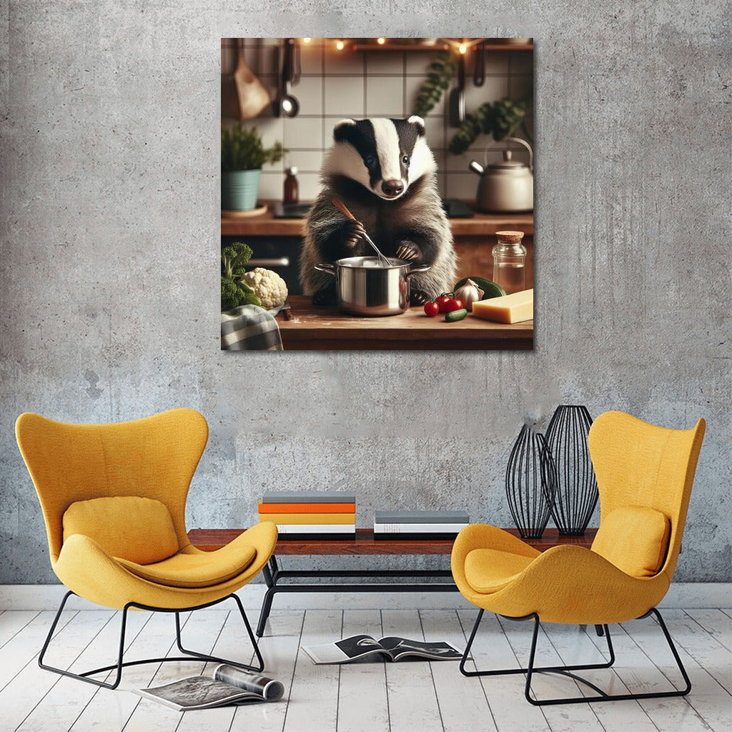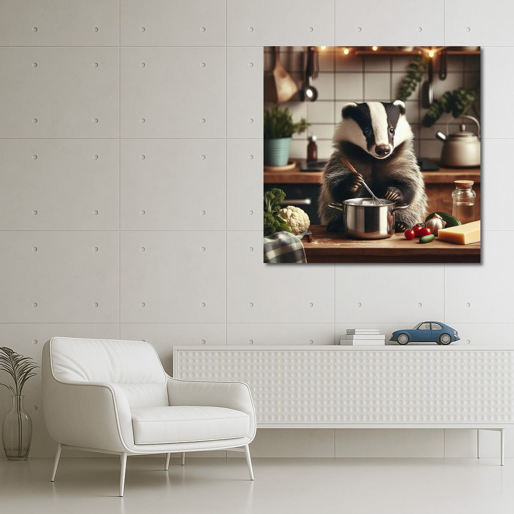 Bring your wall to life with this adorable poster: a badger in the kitchen magic, creating culinary masterpieces! See more from the collection: Animals Art