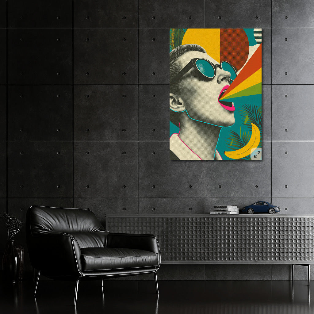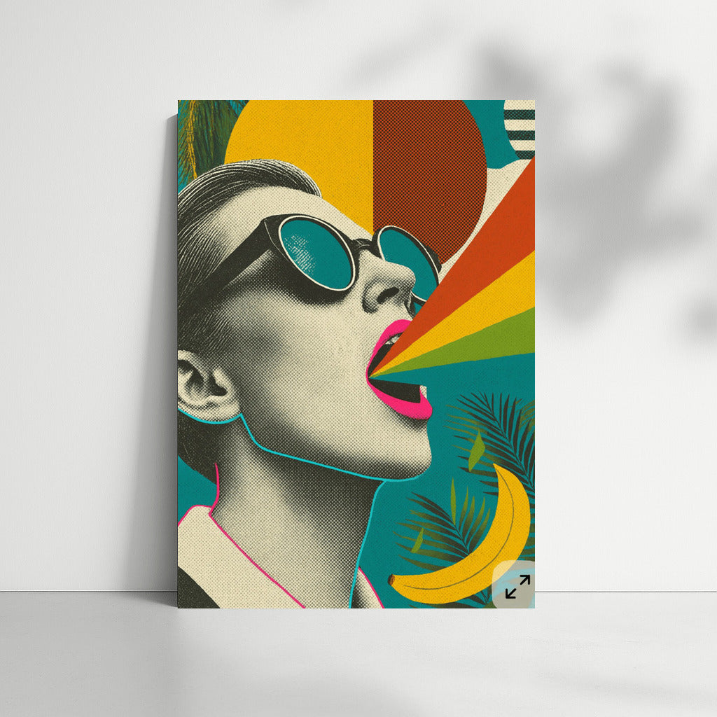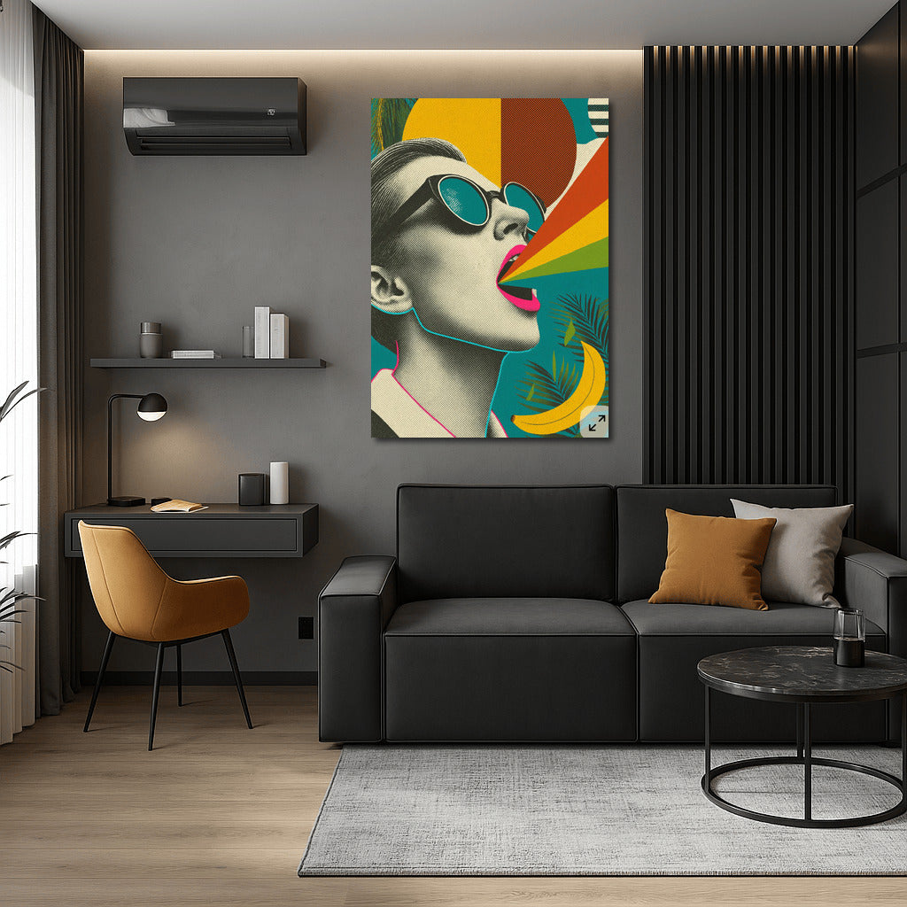 A vibrant hipster poster: geometry, bananas and a splash of color on the walls. Wall art for the bold and creative! See more from the collection: Hipsters Art