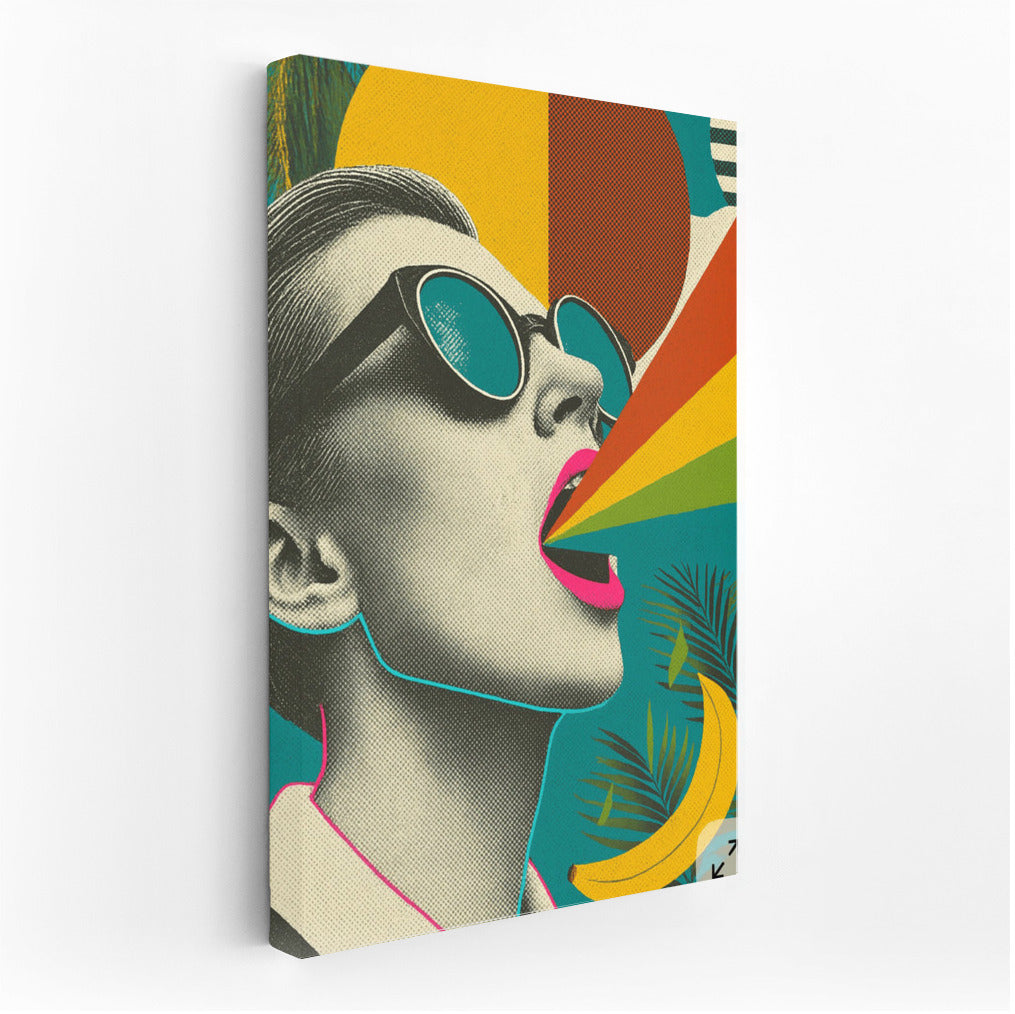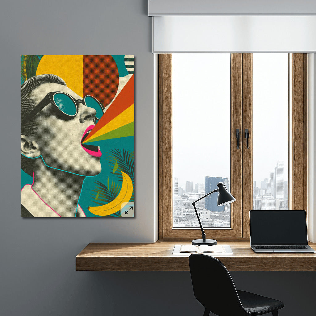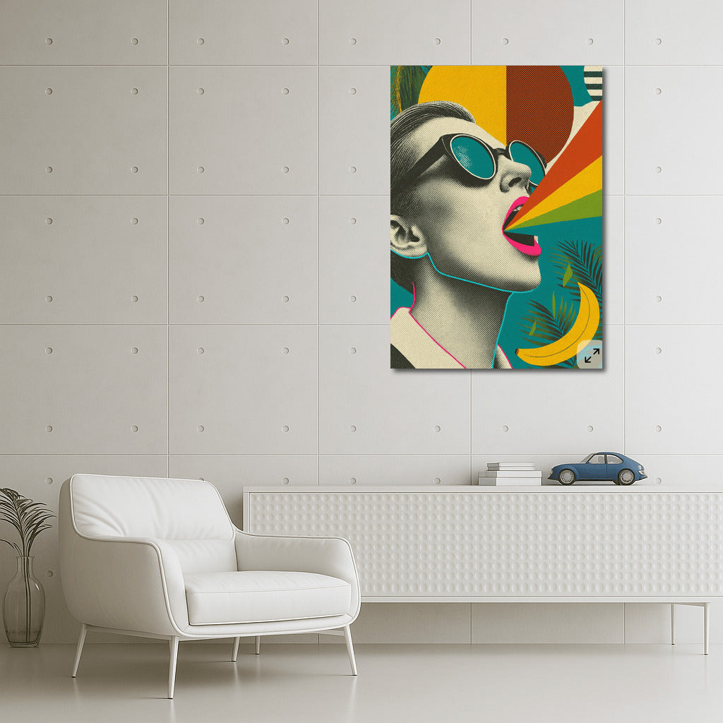 A vibrant hipster poster: geometry, bananas and a splash of color on the walls. Wall art for the bold and creative! See more from the collection: Hipsters Art