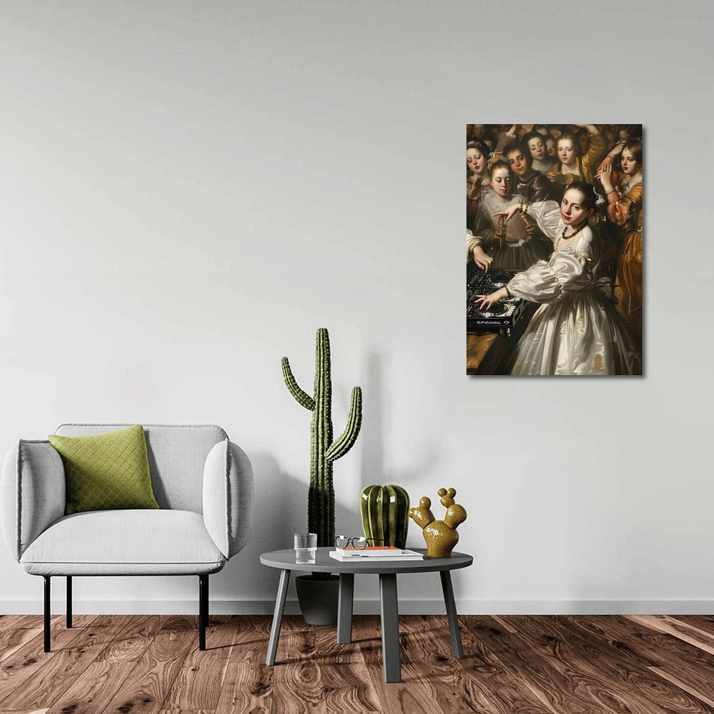 Poster Party of the Epochs: Art meets music! This painting brings the baroque atmosphere to life in the rhythm of DJ sets. See more from the collection: Mixed Wall Art