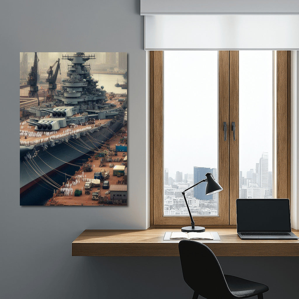 Majestic Battleships Harbor 2 poster: a powerful battleship in the port, the embodiment of power and history in your interior. See more from the collection: Military & Veterans Art