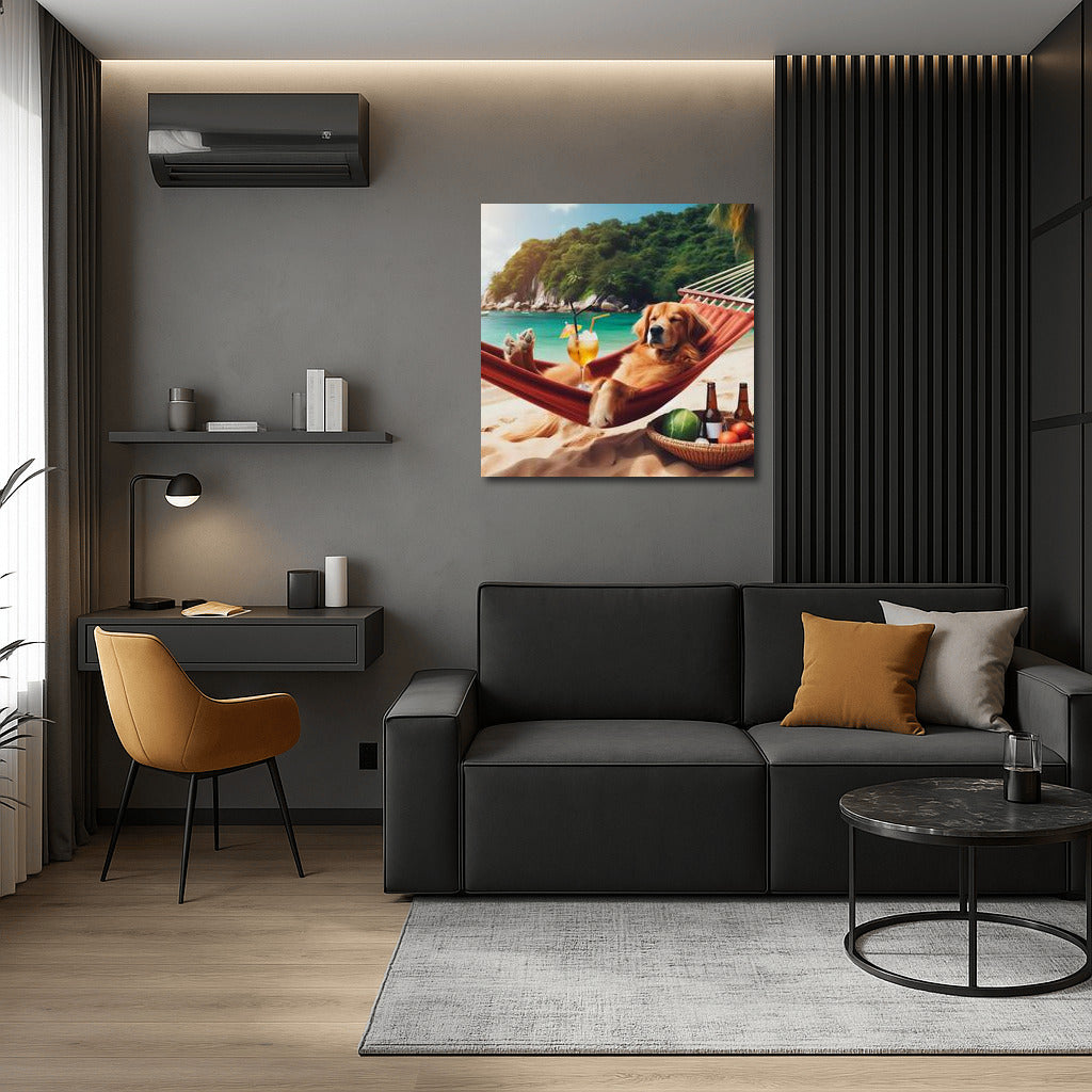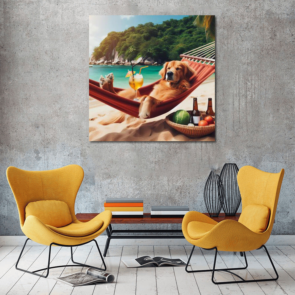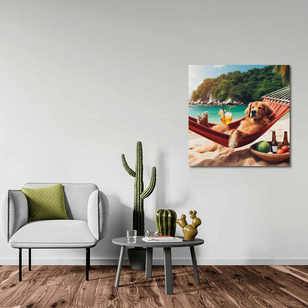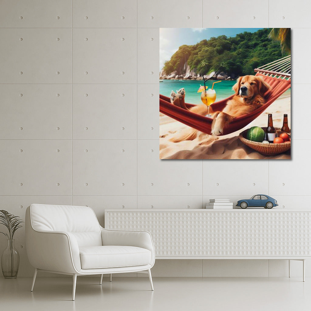 Beach Chill: Dog in a Hammock with a Cocktail Wall Art