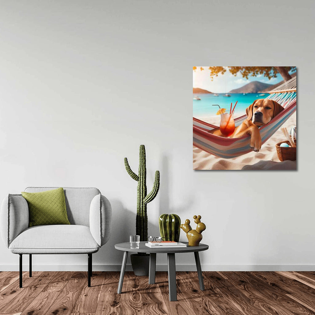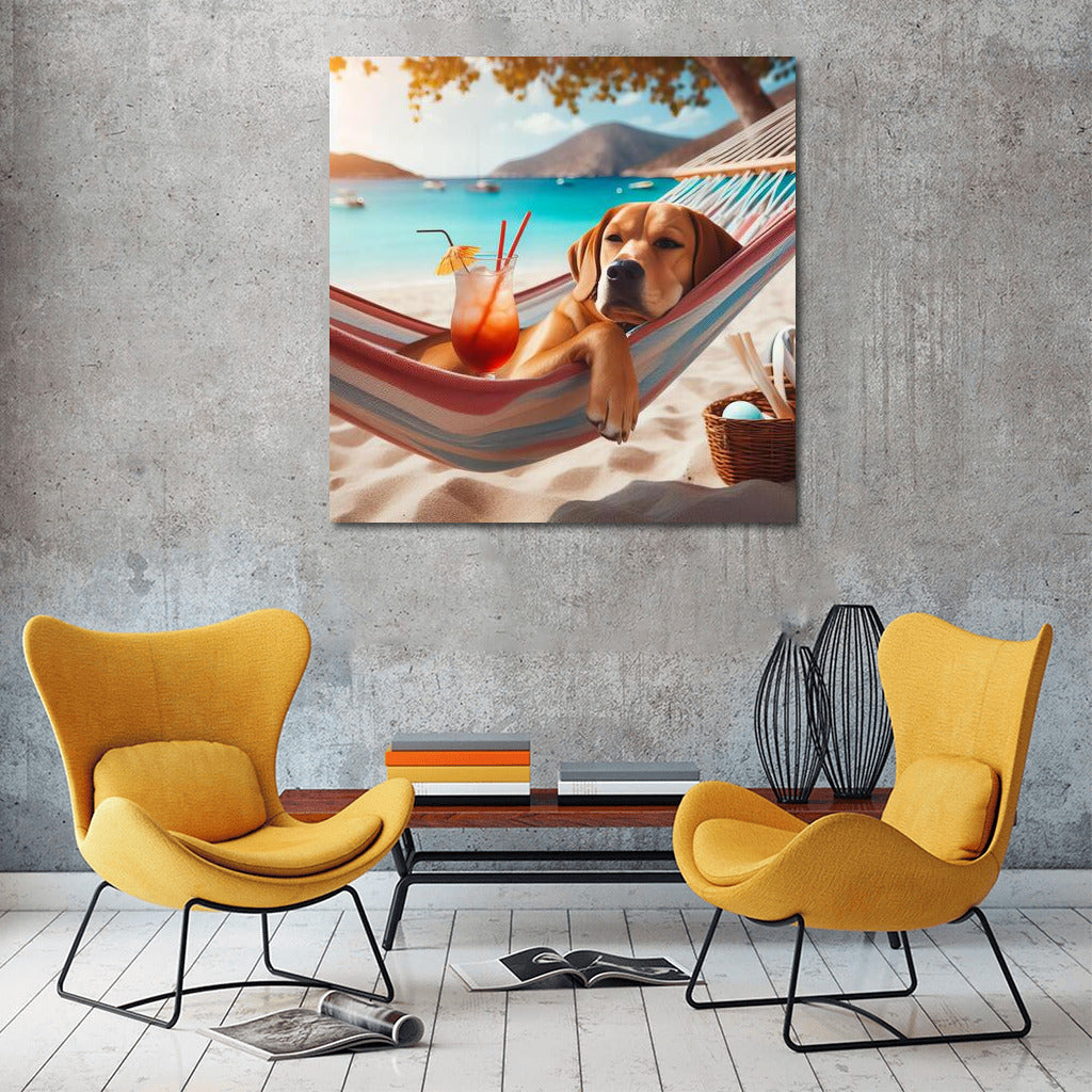 Beach Chill: Dog in a Hammock with a Cocktail Wall Art