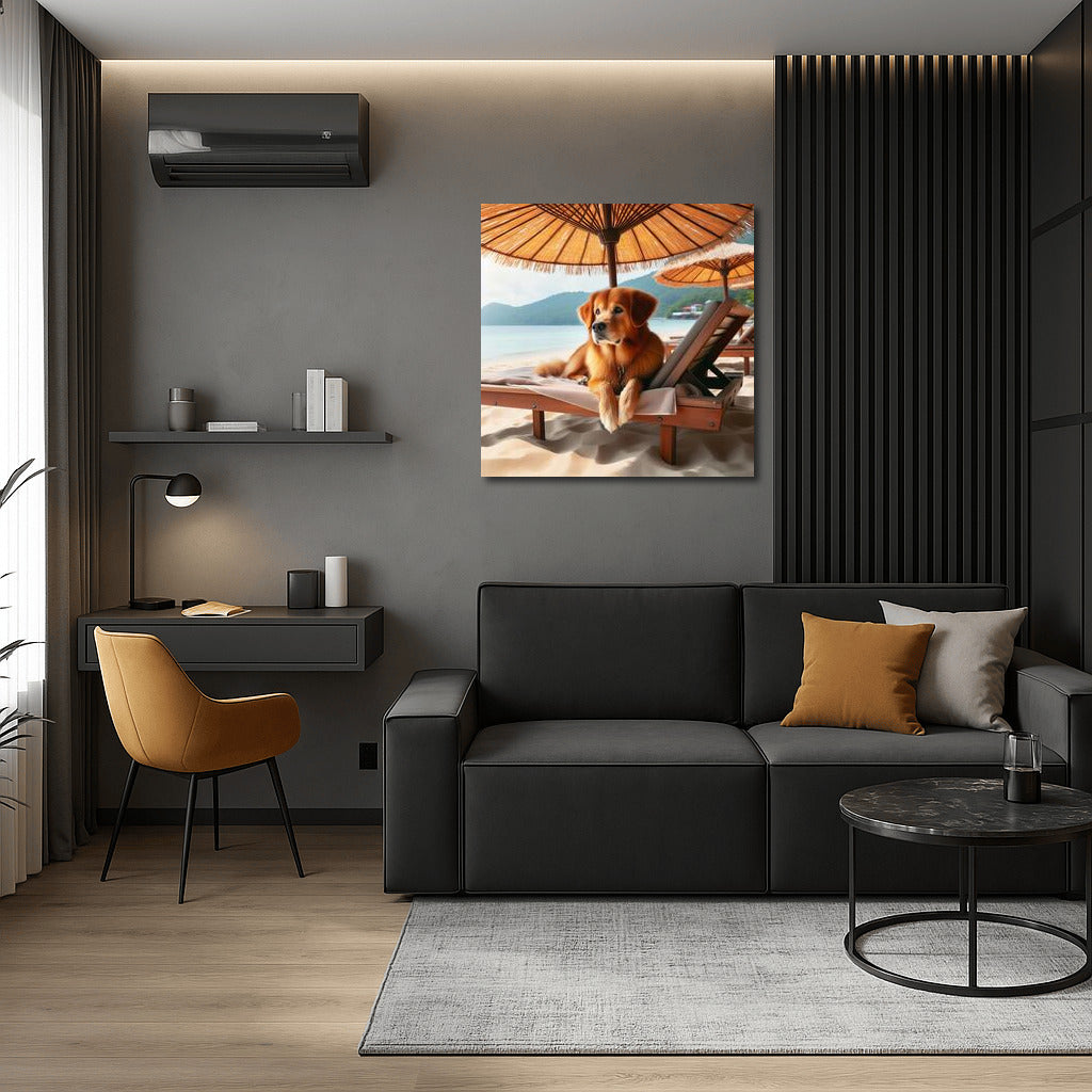 Beach Relax: Dog on a Sunbed under an Umbrella Wall Art