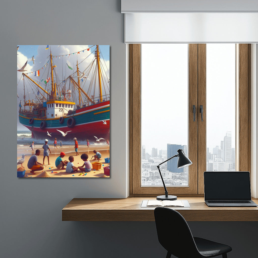 The bright poster Trawlers Beach 3 will enliven your interior with the atmosphere of the beach, sea waves and carefree childhood. See more from the collection: Ships Art