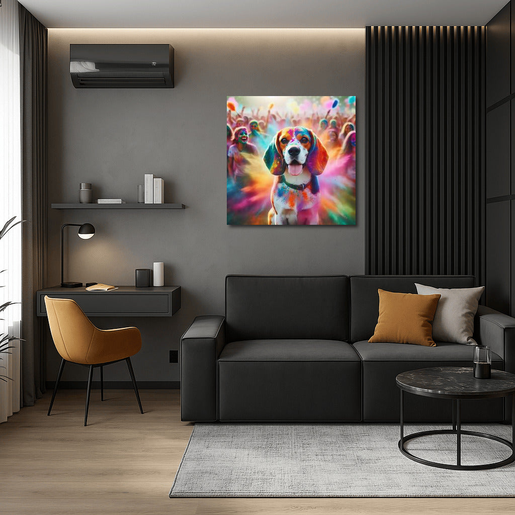 Beagle at the Holi Extravaganza: An Explosion of Colours and Joy Wall Art