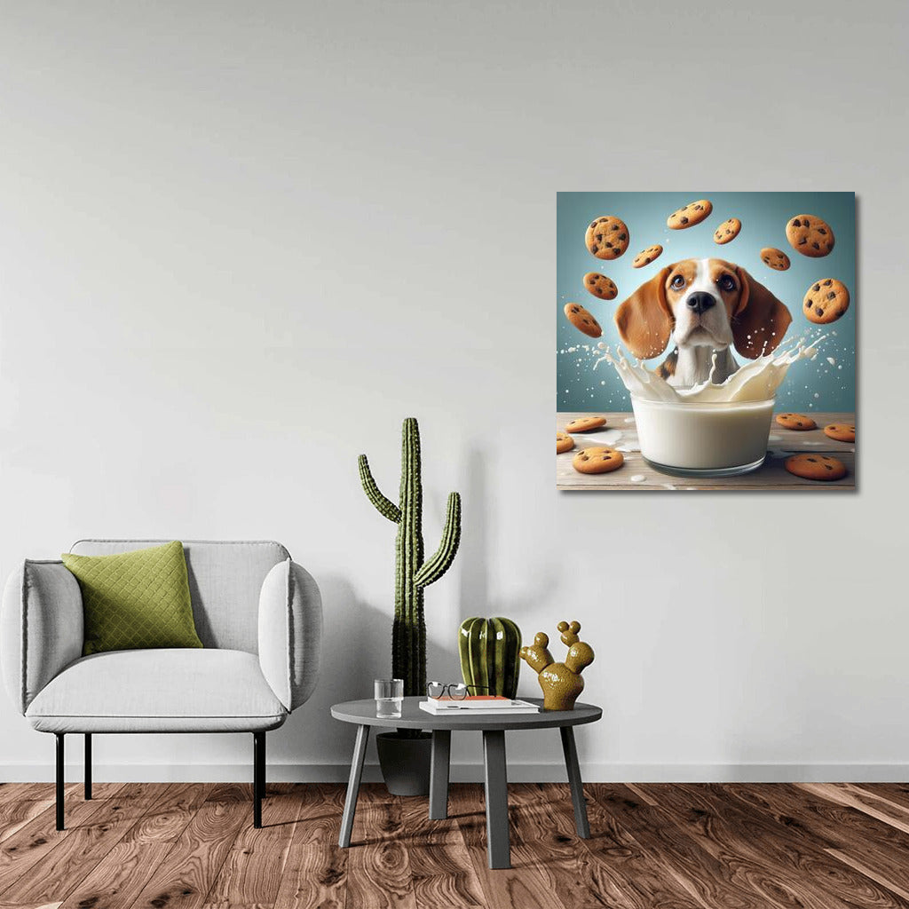 Beagle in a Milk Pool with Floating Cookies: Humor for Foodies Wall Art