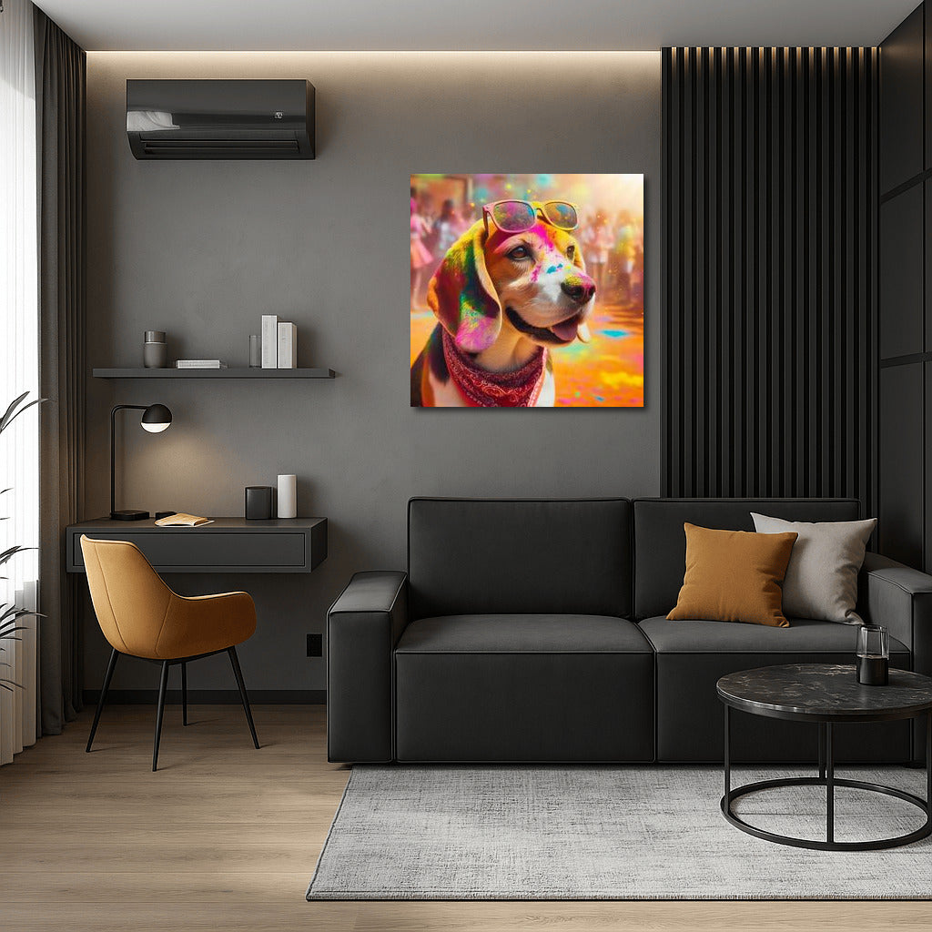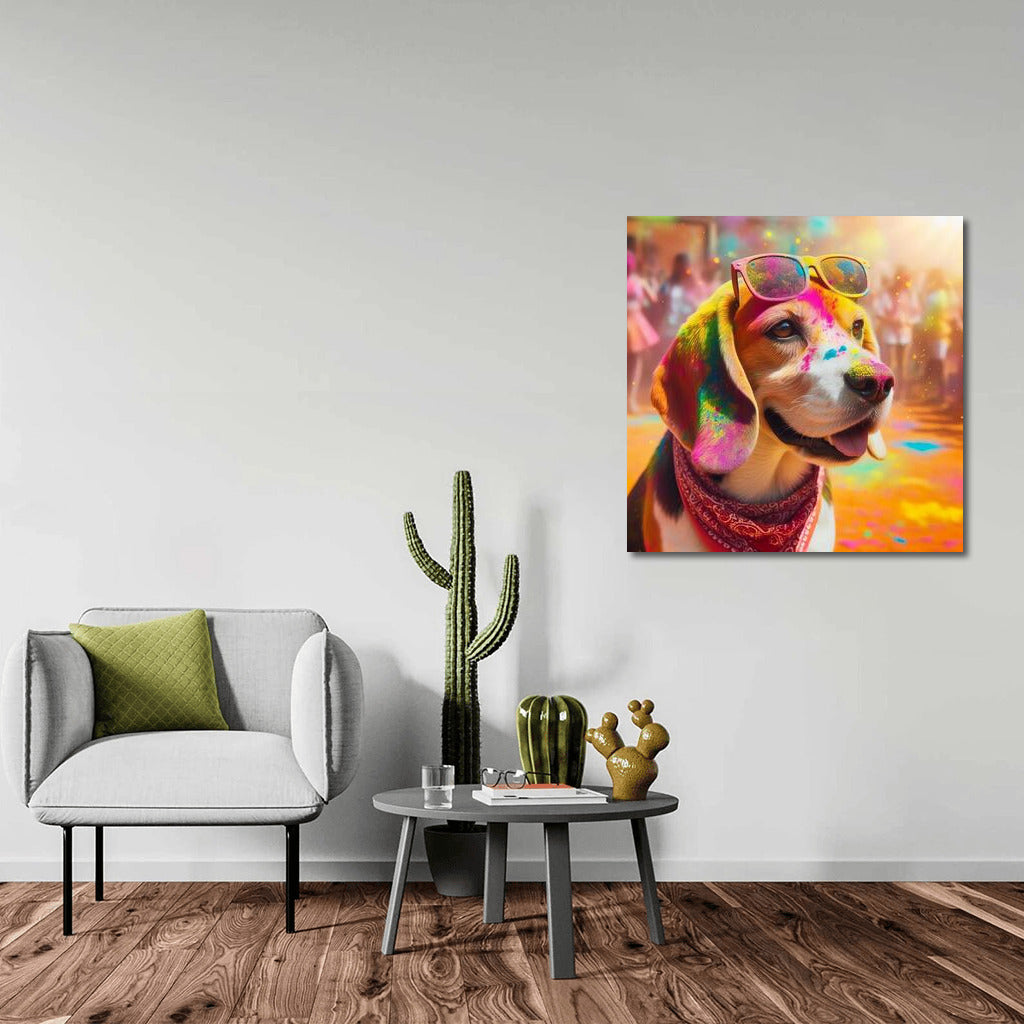 Beagle in Rainbow Extravaganza: Holi in Colours Wall Art