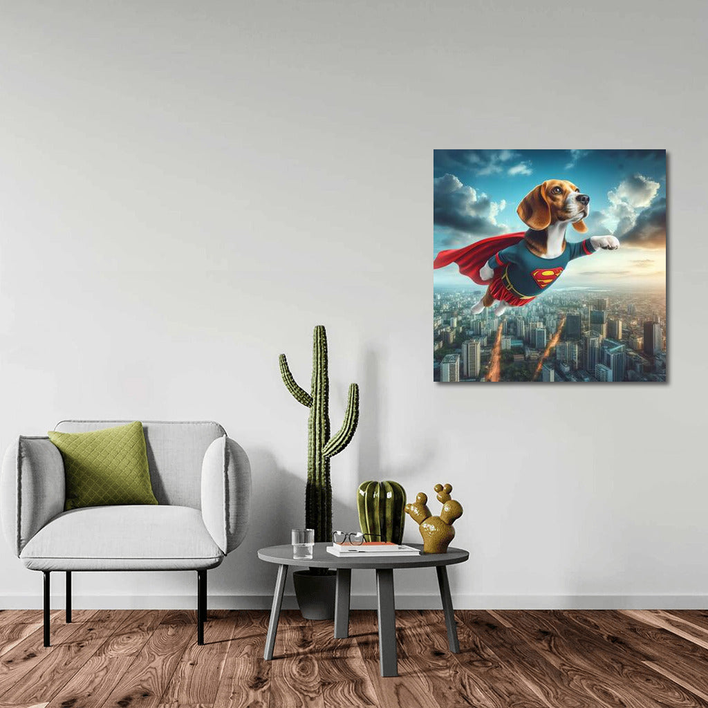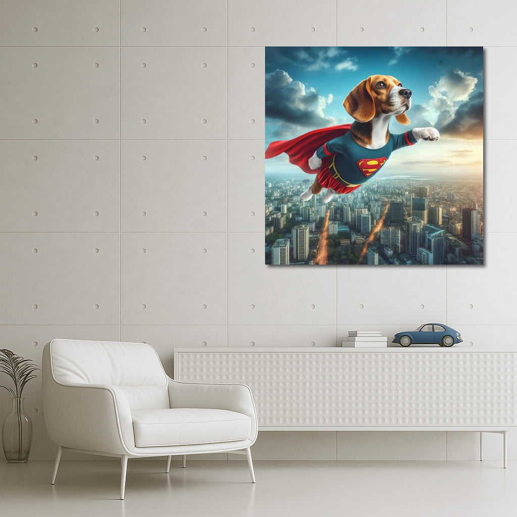 Beagle Superhero: City Rescuer in Flight Wall Art