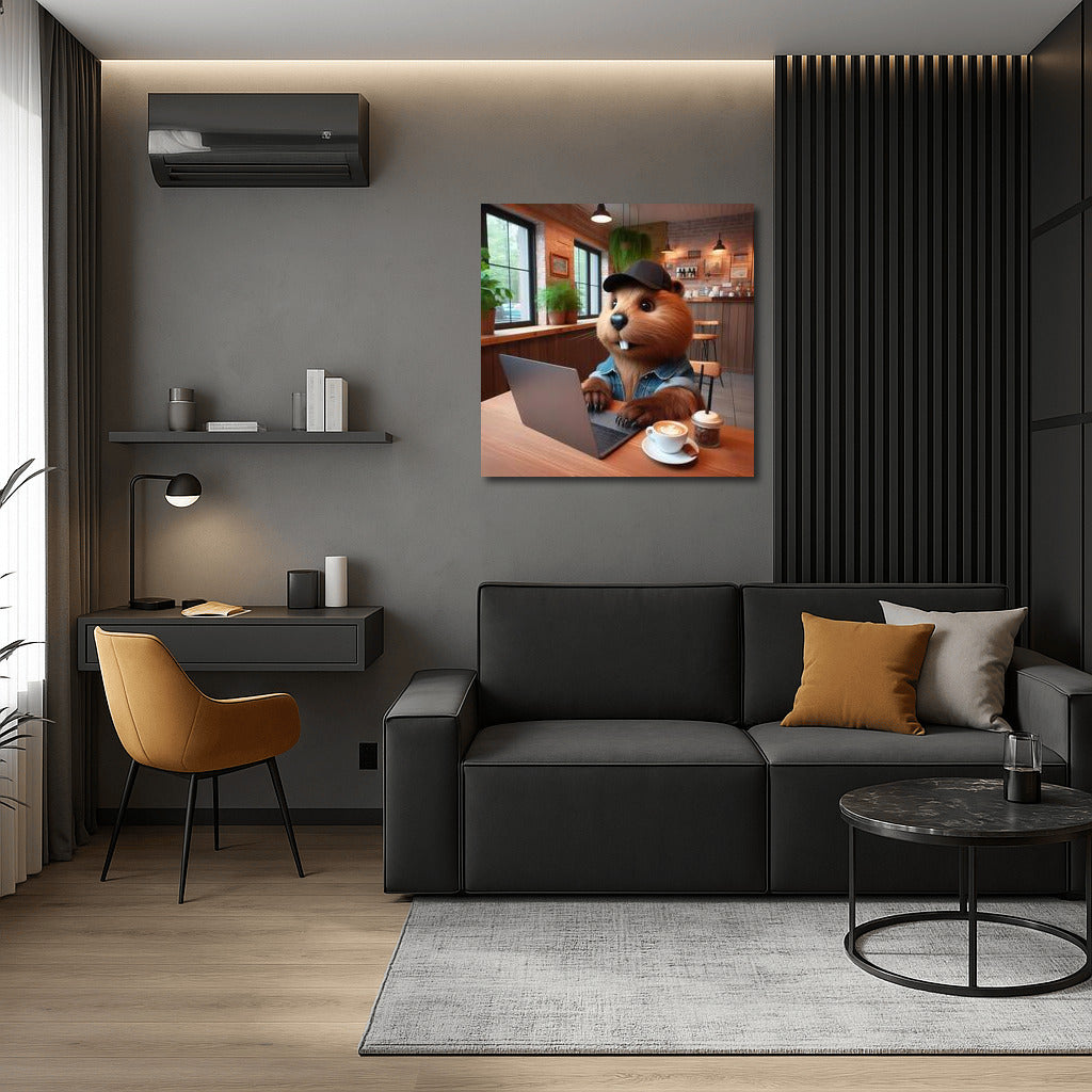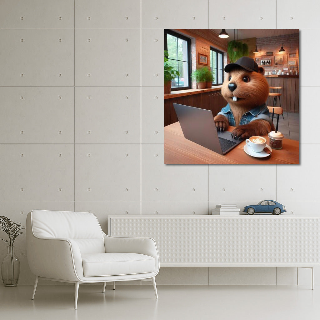 Beaver in the Cafe: Cozy Workday with a Laptop Wall Art