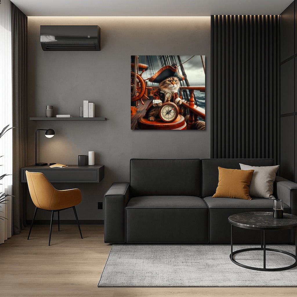Dive into pirate adventures with the poster: Bengal cat commander on the deck of a ship with a compass! Dream wall art! See more from the collection: Animals Art