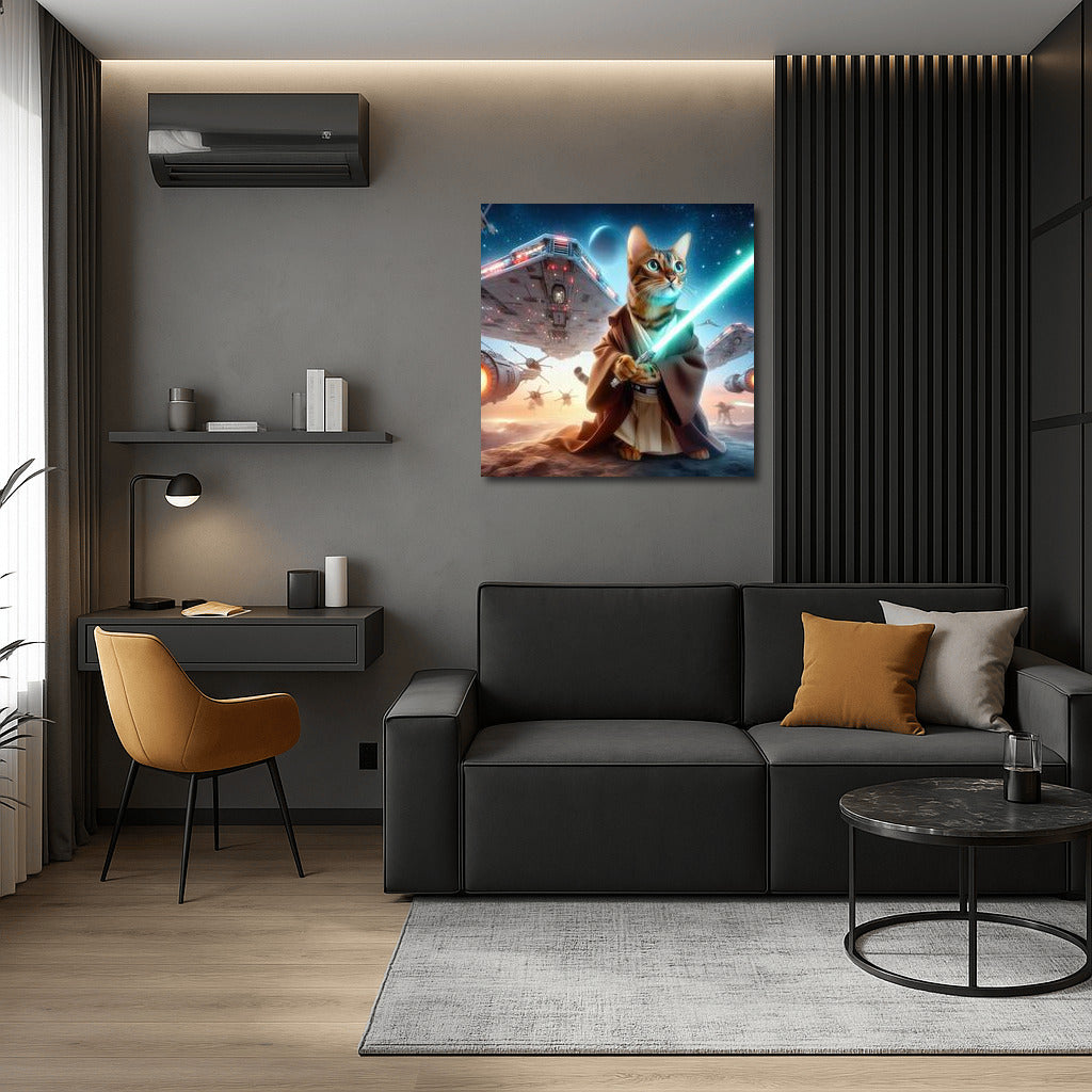 Bengal Cat Jedi with Laser Sword by Spaceship: Star Wars Adventures Wall Art