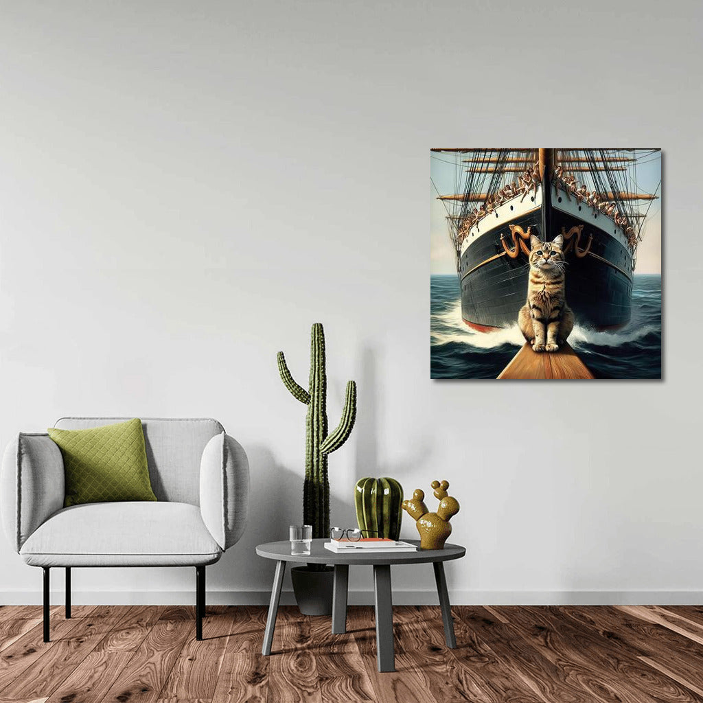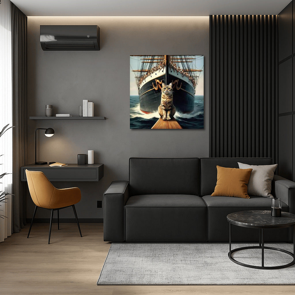 Titanic style cat on the bow of the ship - a unique poster for lovers of wall art and humor. See more from the collection: Animals Art