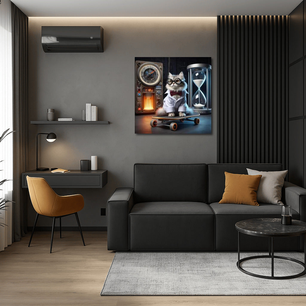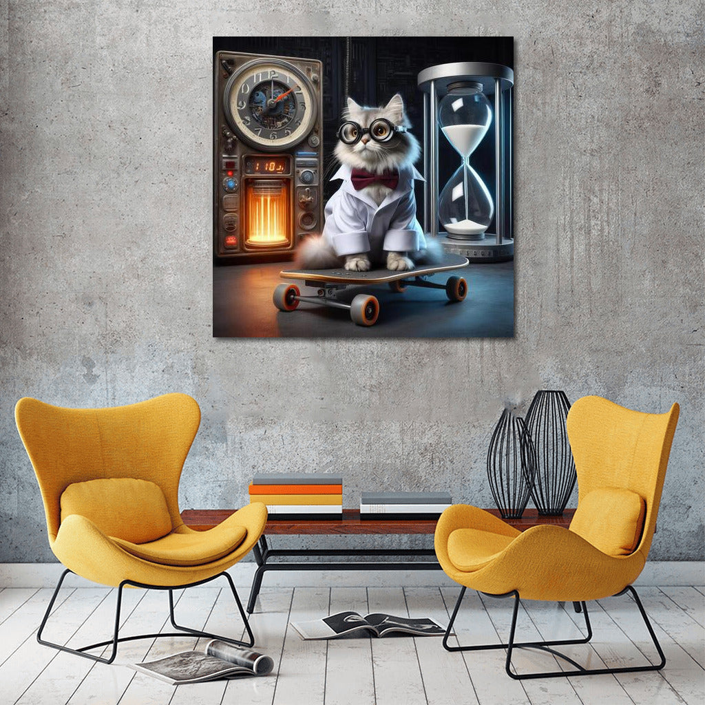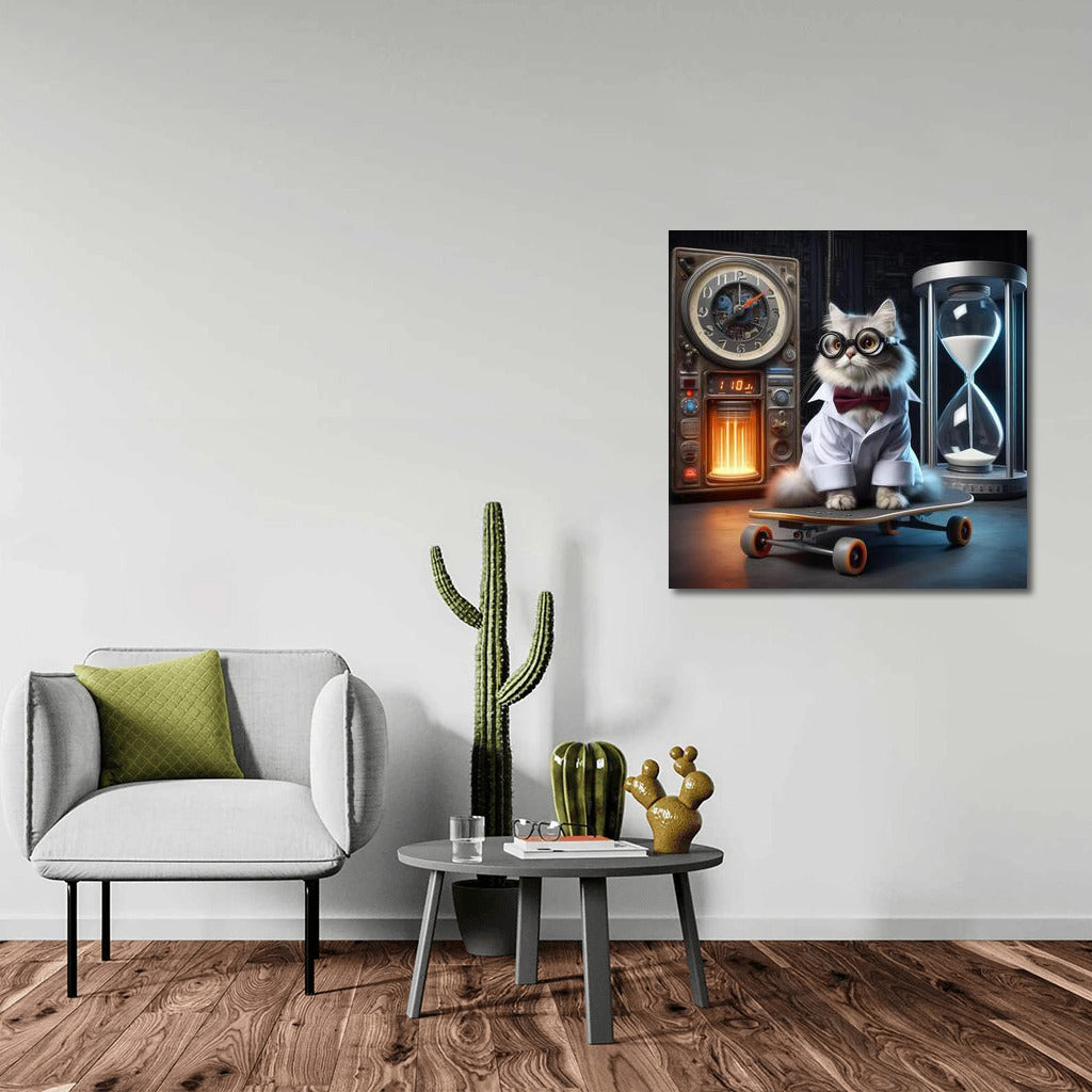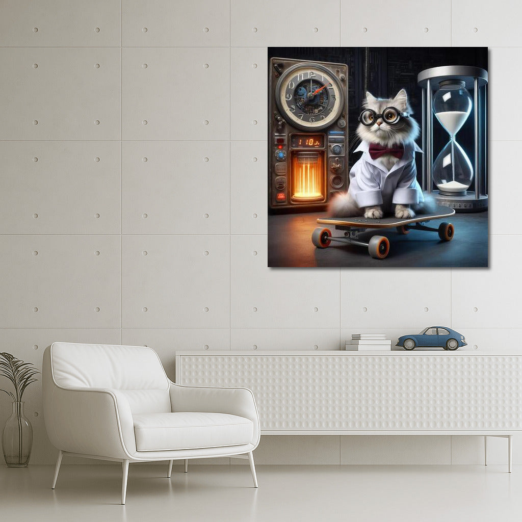 Bengal Scientist Cat on a Flying Board at the Time Machine Wall Art