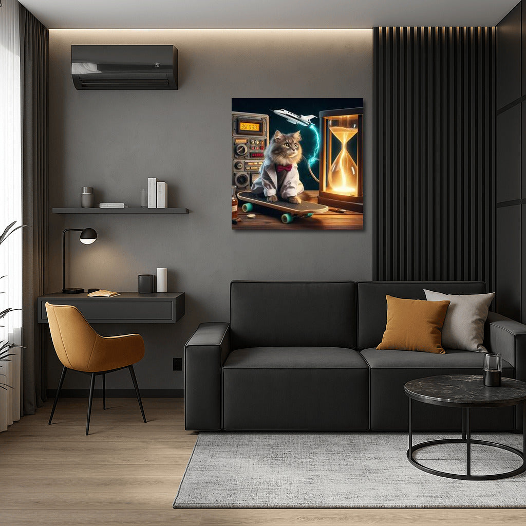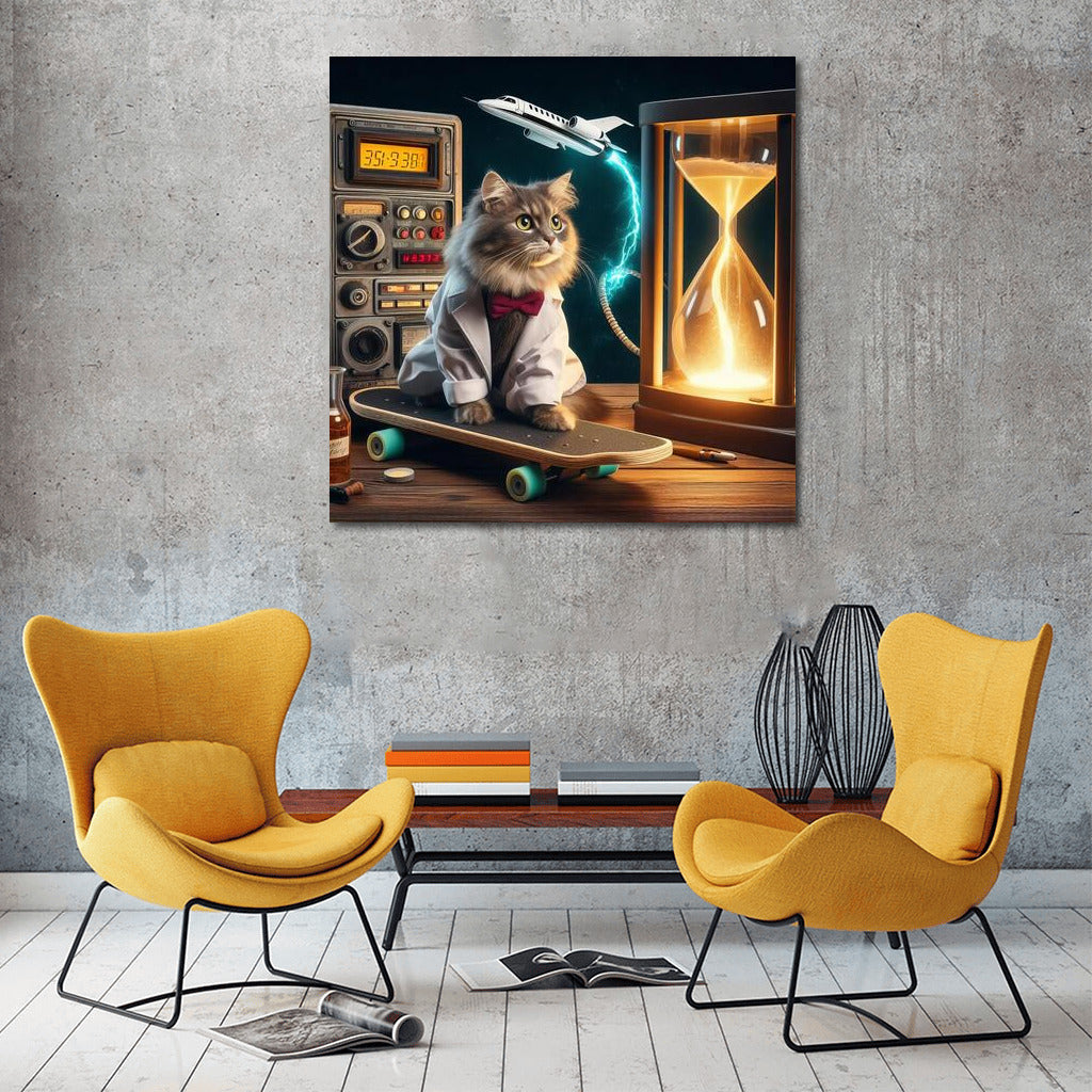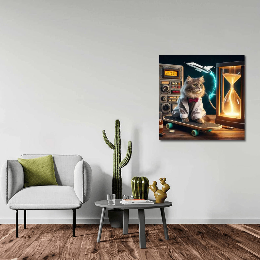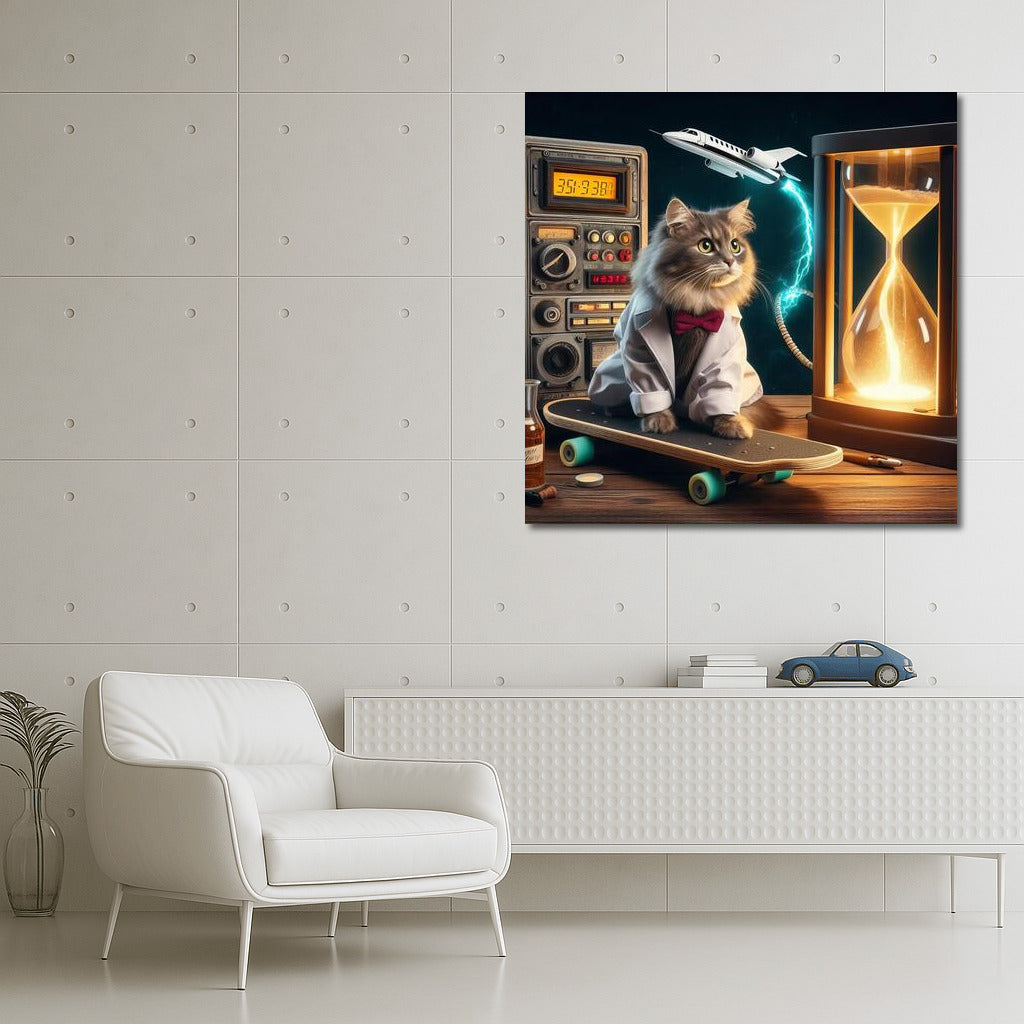 Bengal Scientist Cat on a Flying Skateboard at the Time Machine Wall Art