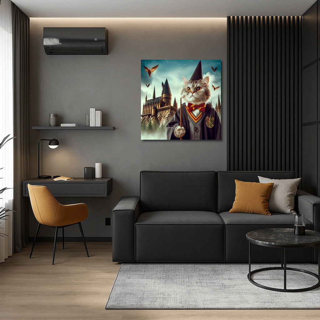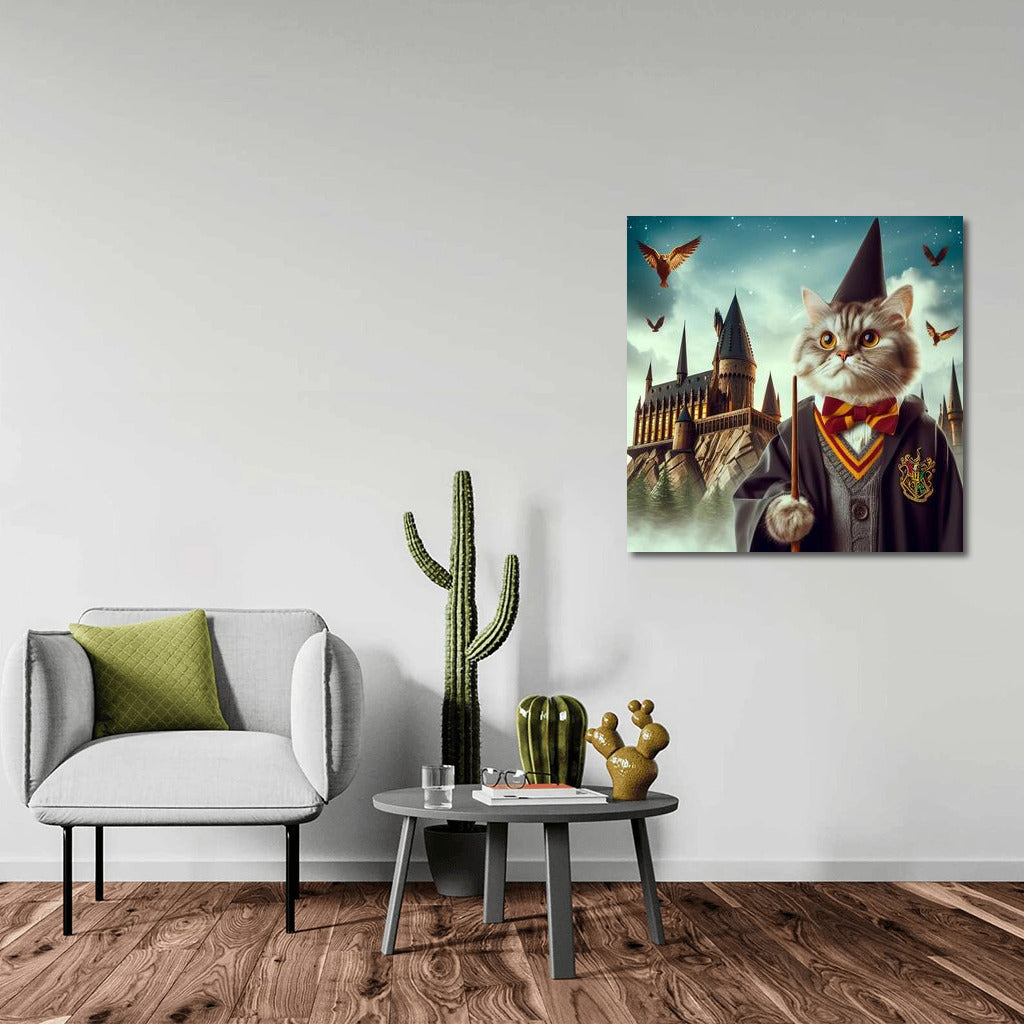 Immerse yourself in magic with this poster: a cat in a wizard's robe at Hogwarts, the embodiment of Harry Potter style for your space! See more from the collection: Animals Art