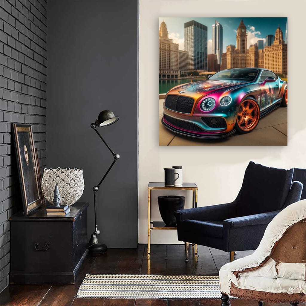 Have you ever seen a poster that makes your heart beat like a turbo at maximum speed? Well, the Bentley Continental GT painting is something special. This art is like drifting on dry asphalt, it will definitely decorate your wall, adding speed and style. See more from the collection: Bentley Art