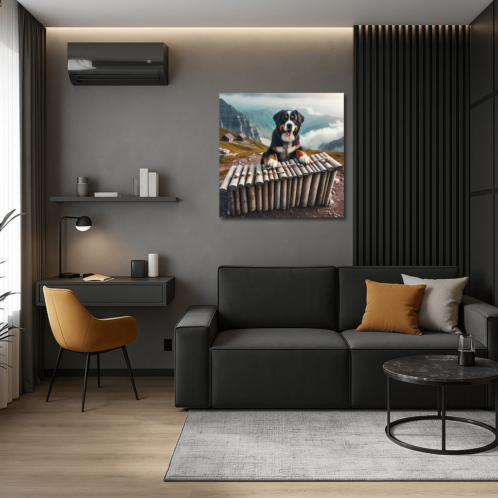Bernese Mountain Dog and Dinosaur Bone Xylophone: A Musical Adventure Wall Art