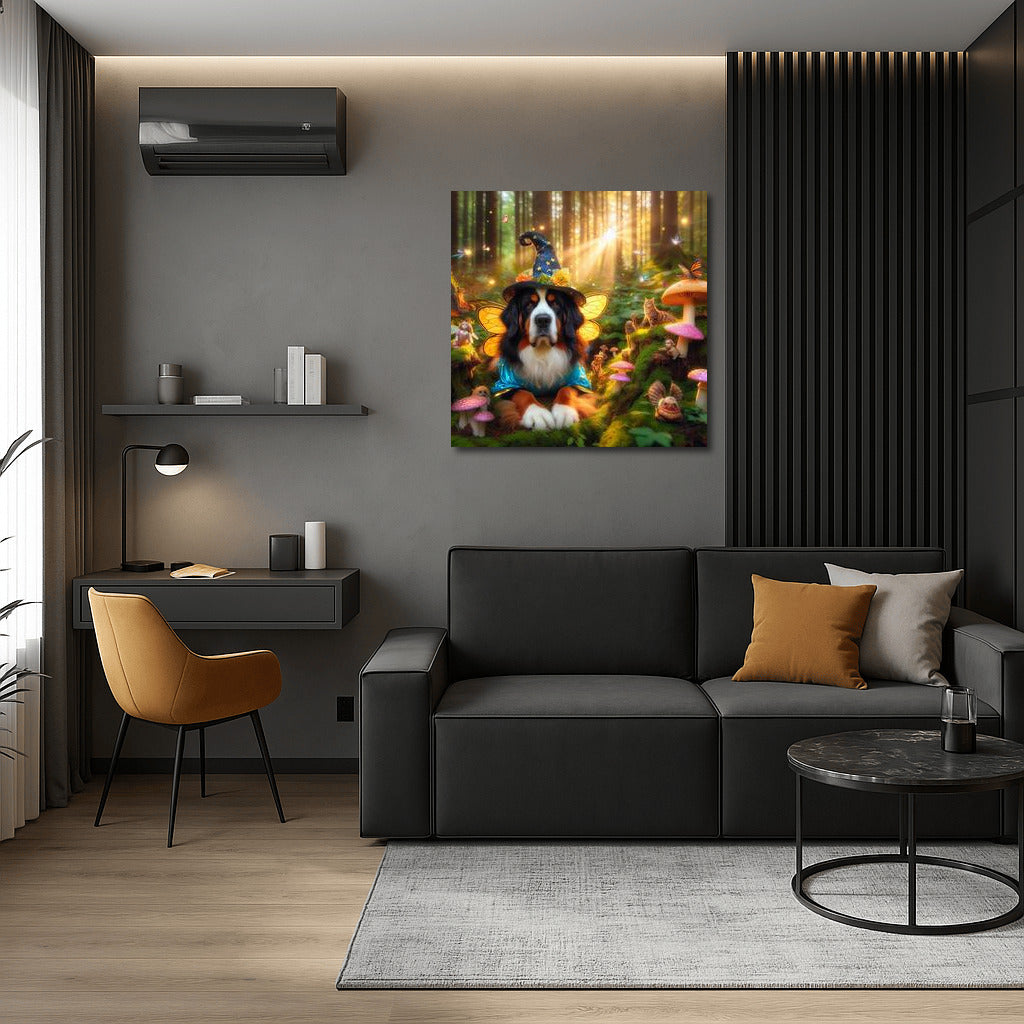 Bernese Mountain Dog in the Magical Forest: Fairytale Fairies and Mushrooms Wall Art