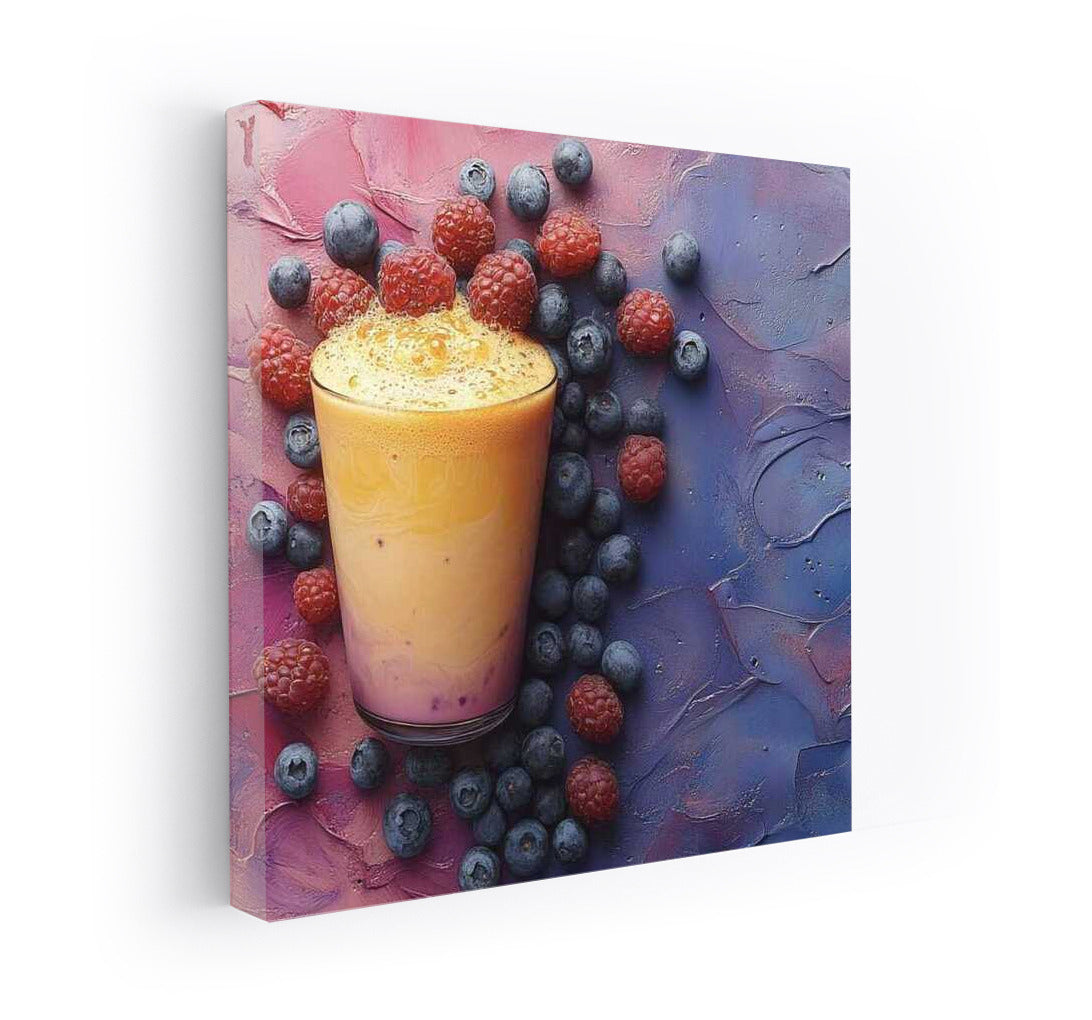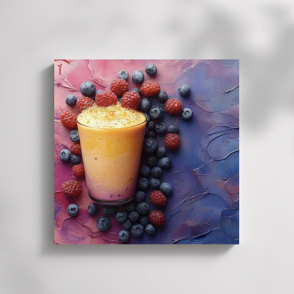 Wall art with berries and coffee: a magical cocktail of blackberries and raspberries on a bright background for gourmets and aesthetes. See more from the collection: Coffee & Tea Art & Drinks