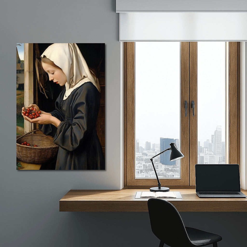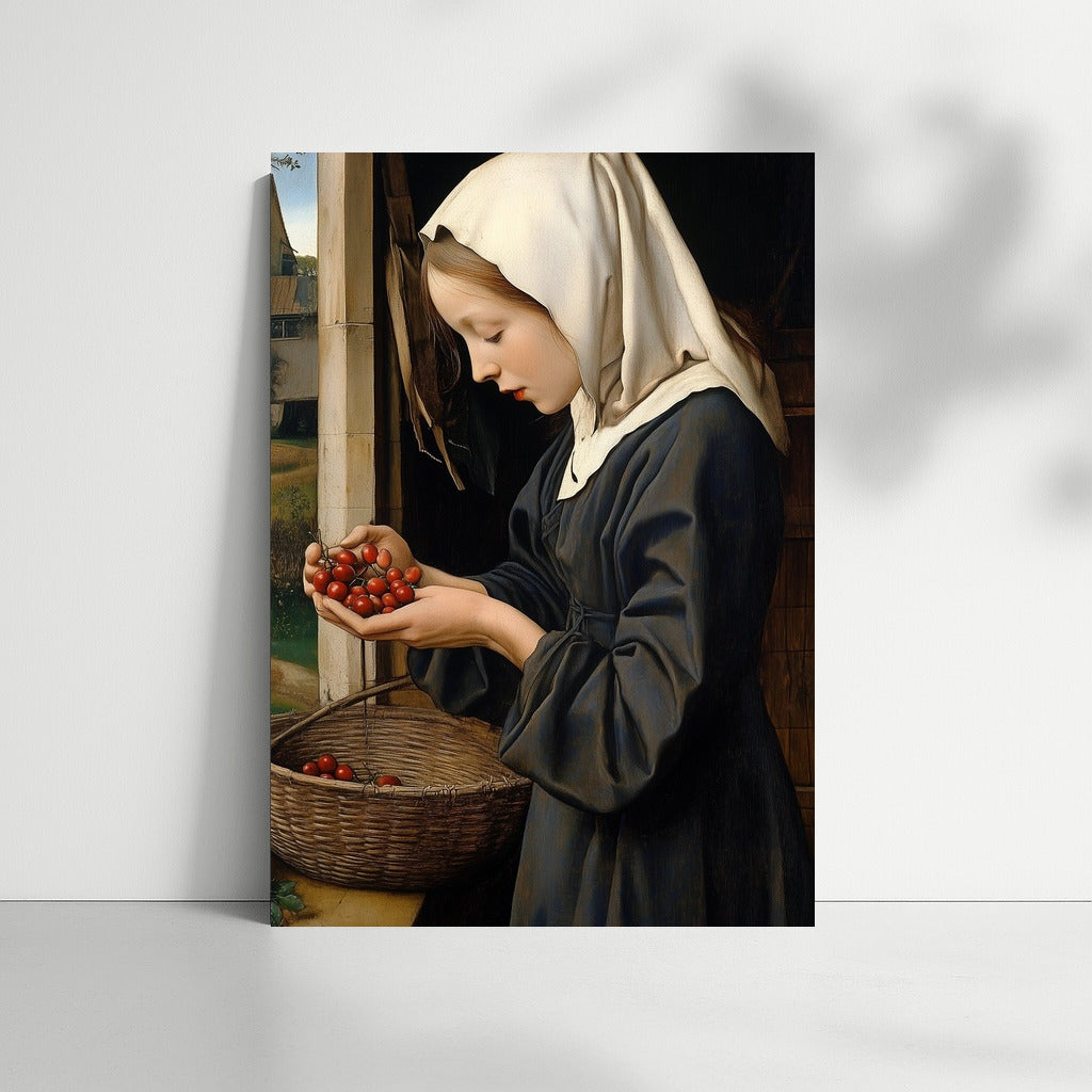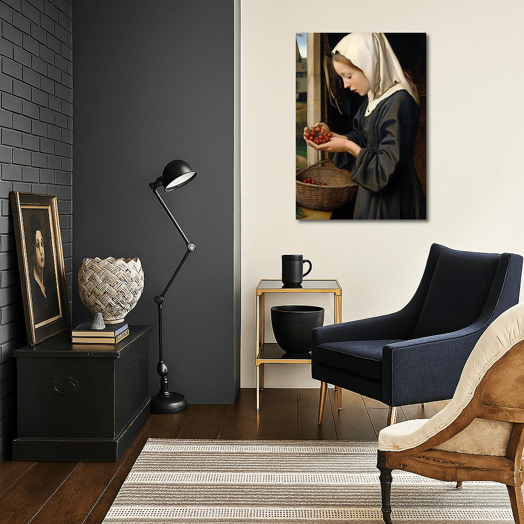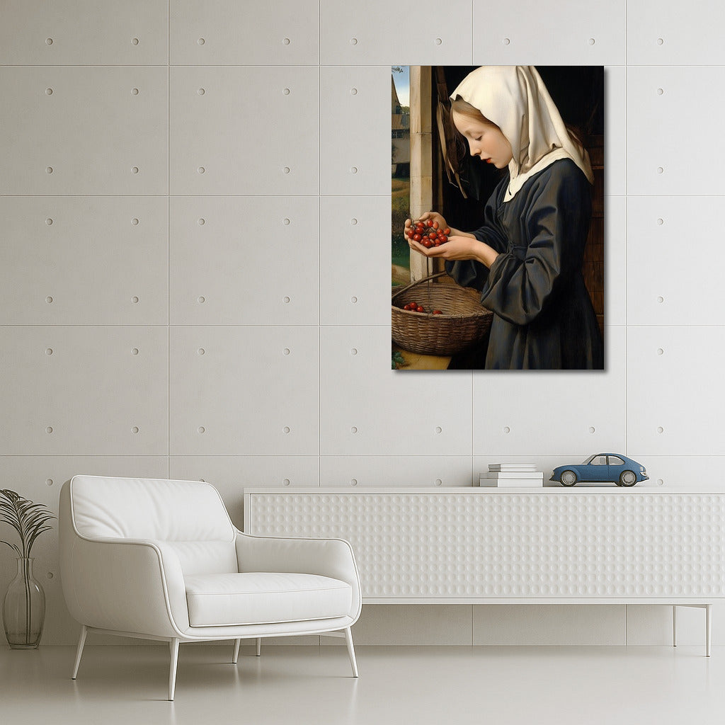 An unusual painting with an atmosphere of coziness and simplicity: a girl with berries. Ideal wall art for your home! See more from the collection: Mixed Wall Art