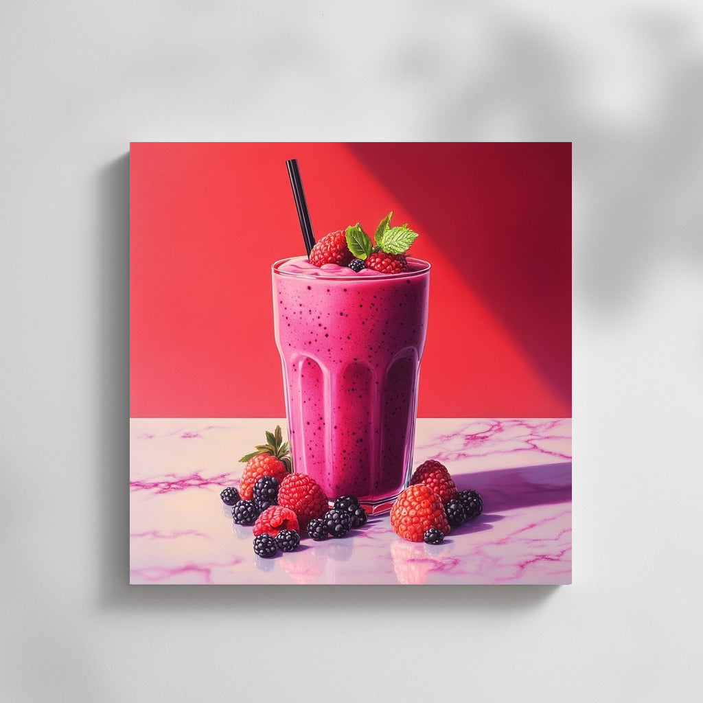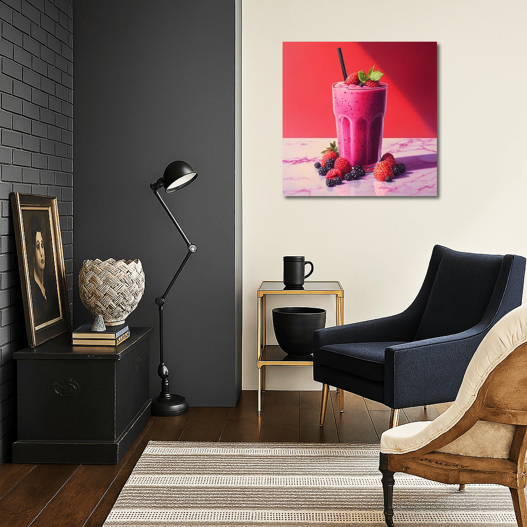 A juicy poster with a bright berry smoothie is a refreshing wall art to create a summer mood in the interior! See more from the collection: Coffee & Tea Art & Drinks