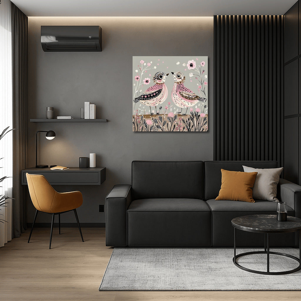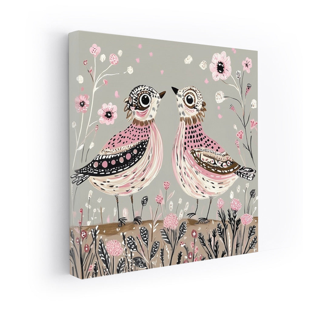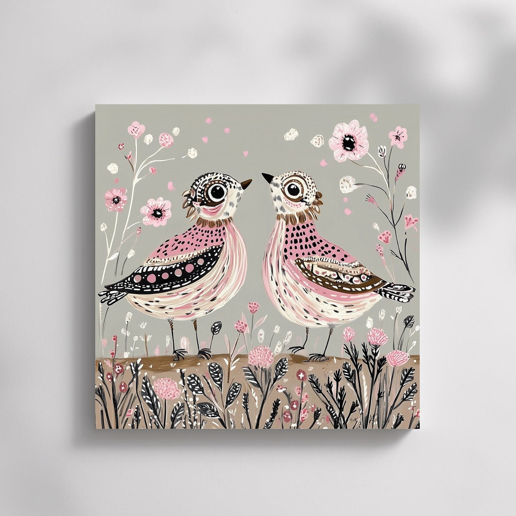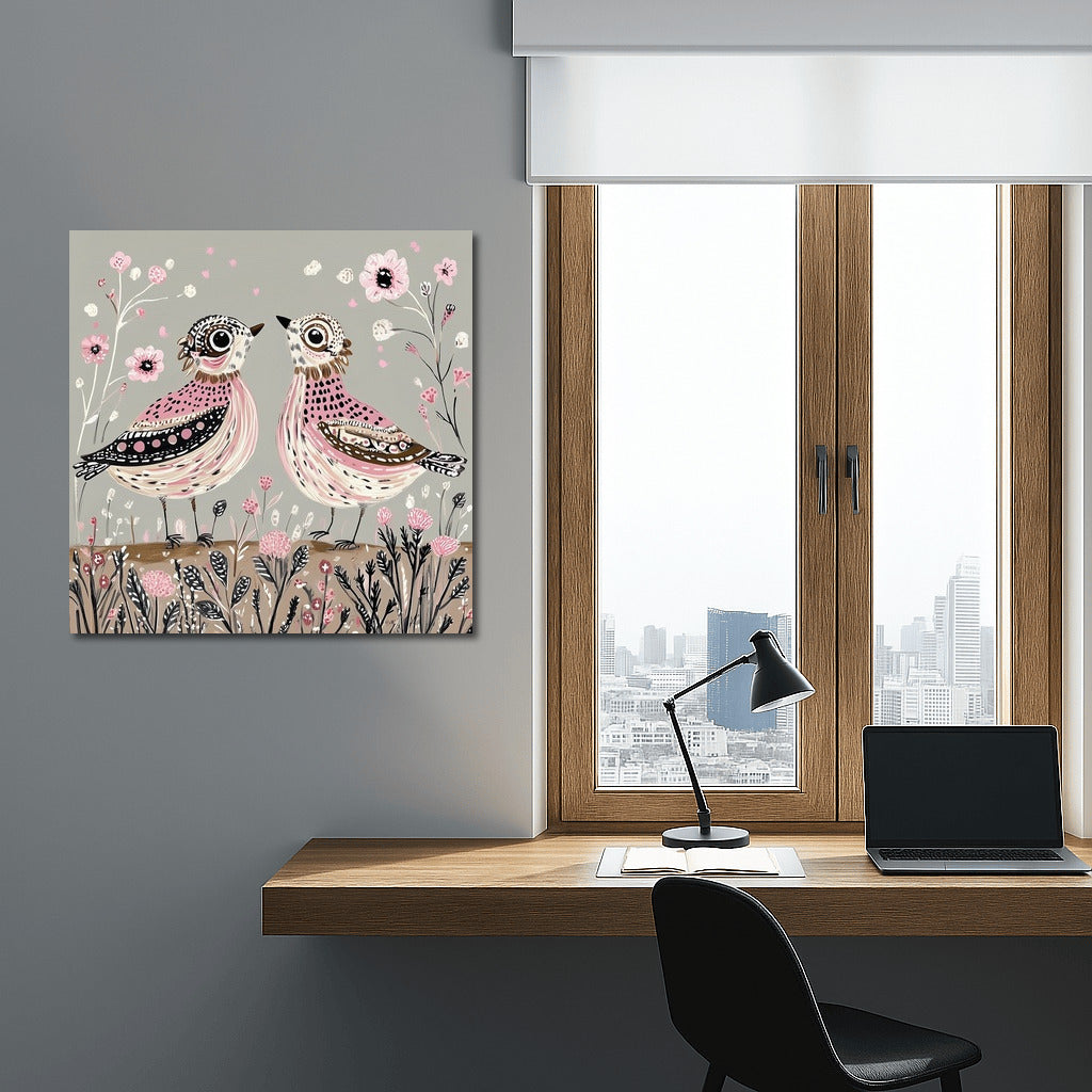 Charming birds in a flower world - a poster where nature comes to life. Add tenderness to your interior! See more from the collection: Animals Art