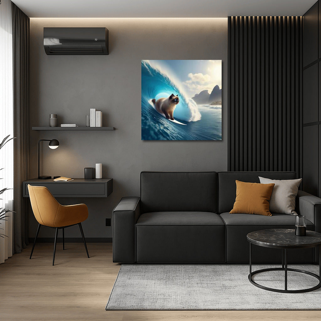 Birman Cat on a Giant Wave: Summer Surfing Adventure Wall Art