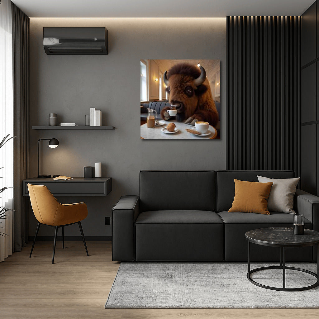 Bison in the Cafe: Morning Ritual with a Cup of Coffee Wall Art