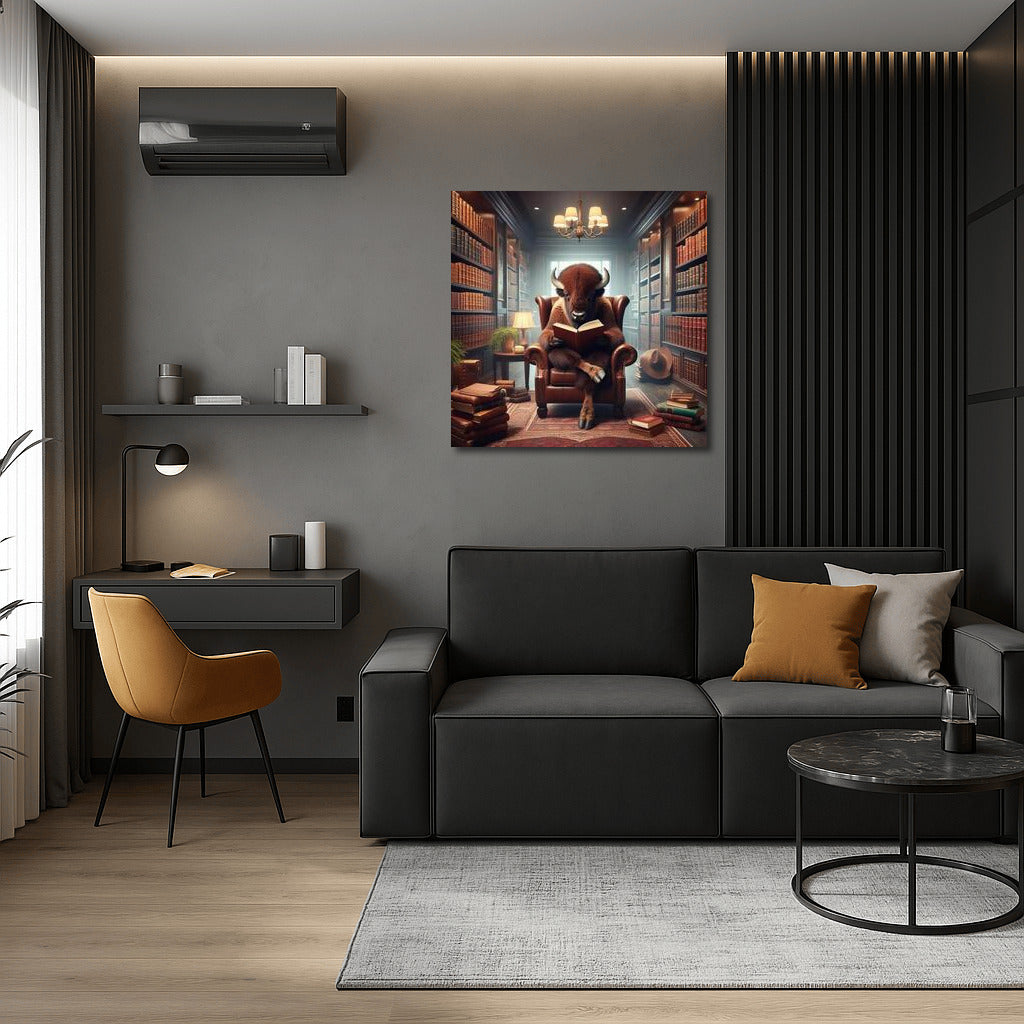 Bison in the Cozy Library: Reading in an Armchair Wall Art