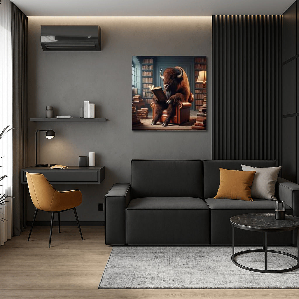 Bison in the Cozy Library: Reading in Silence Wall Art