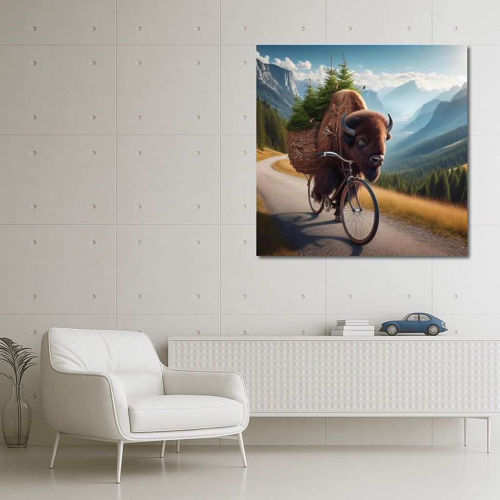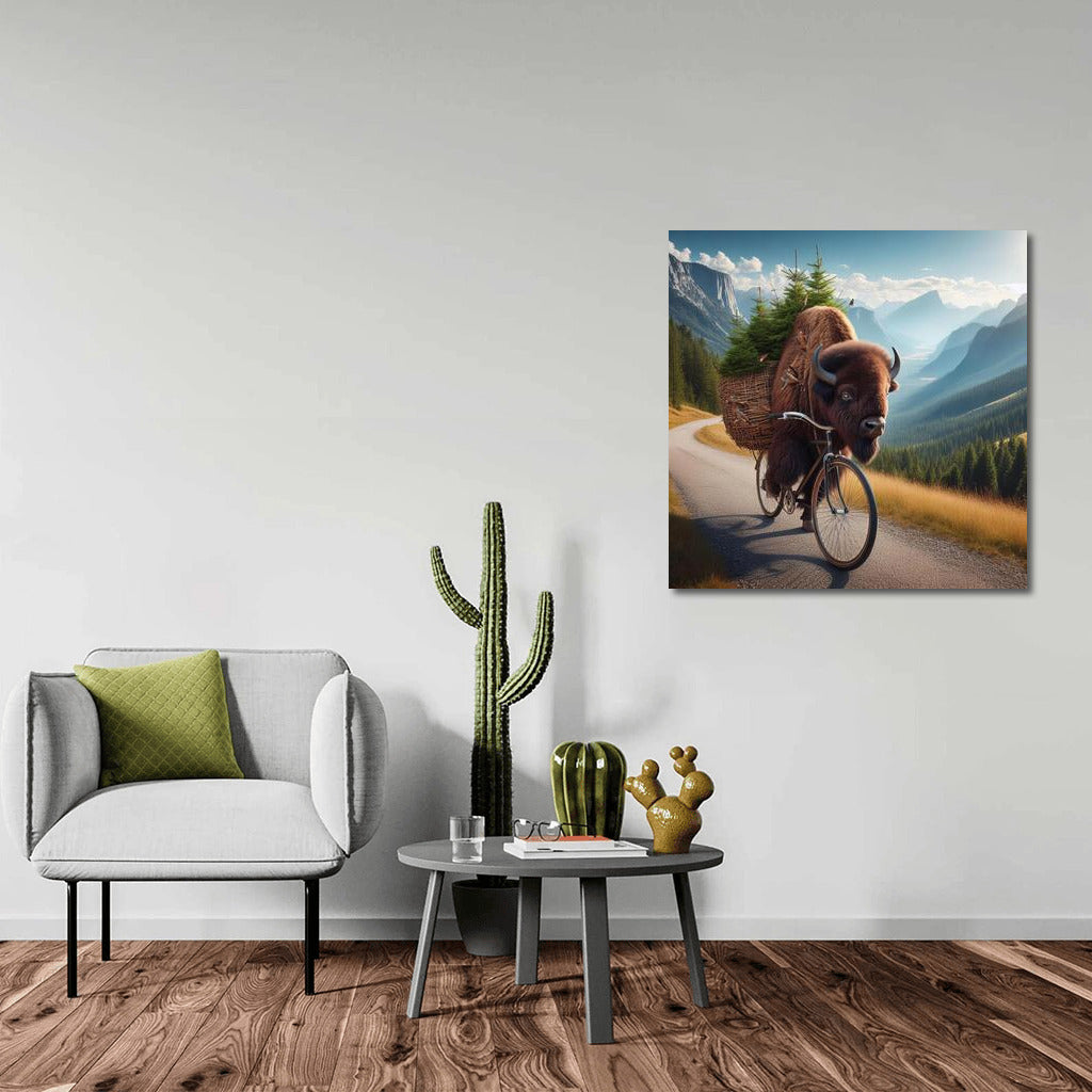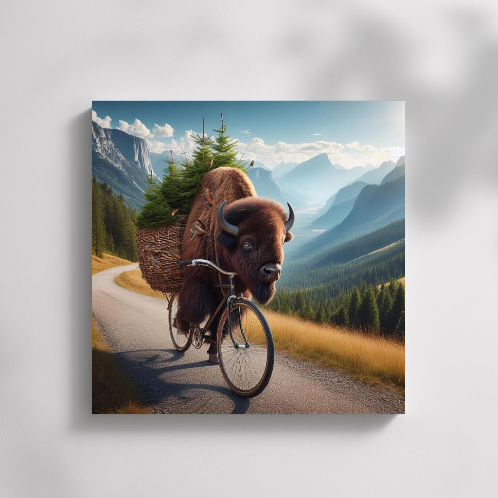 Bison's Bike Adventure: Conquering Mountain Trails Wall Art