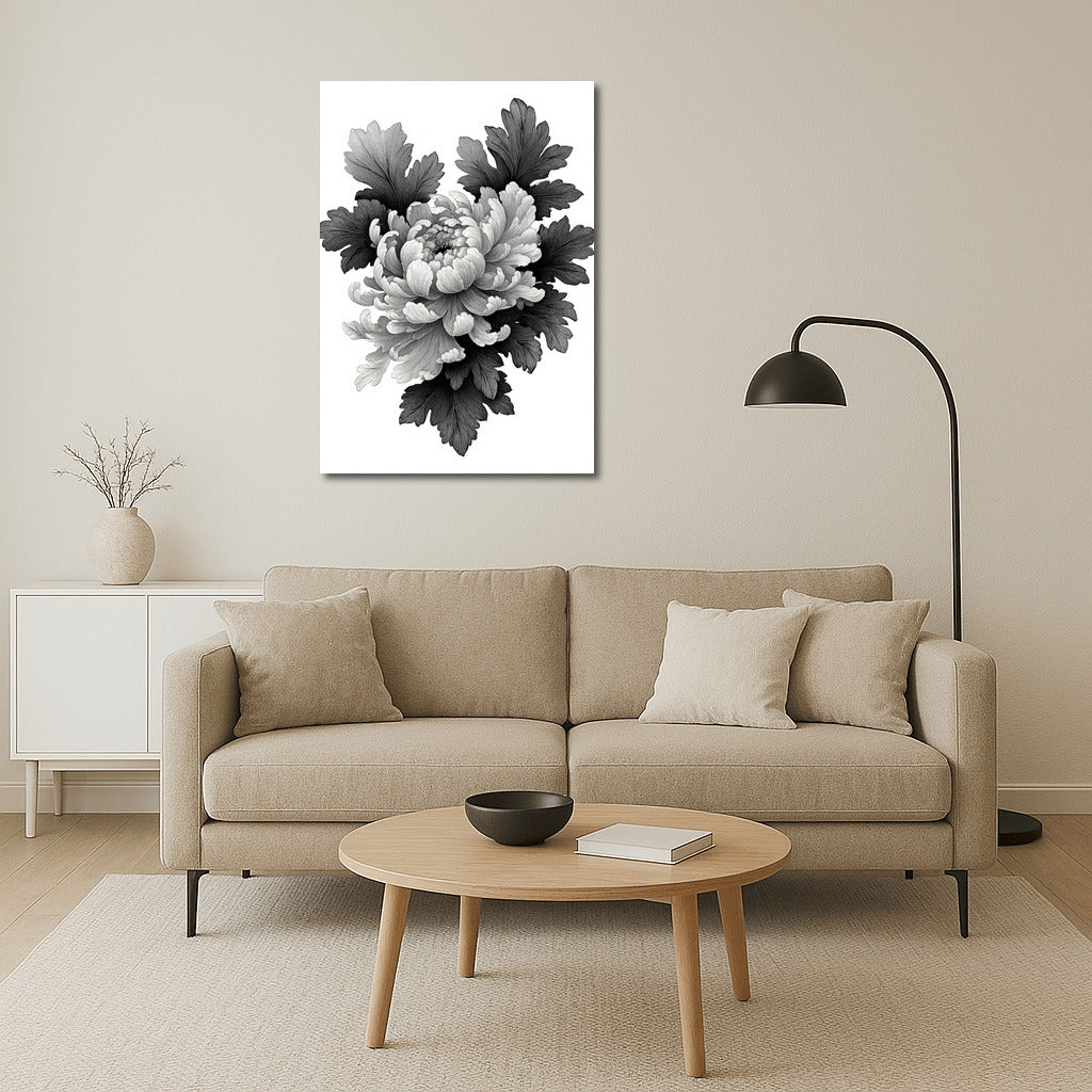 Elegant Chrysanthemum Poster: A wall art that recreates floral perfection in black and white. See more from the collection: Flowers Art