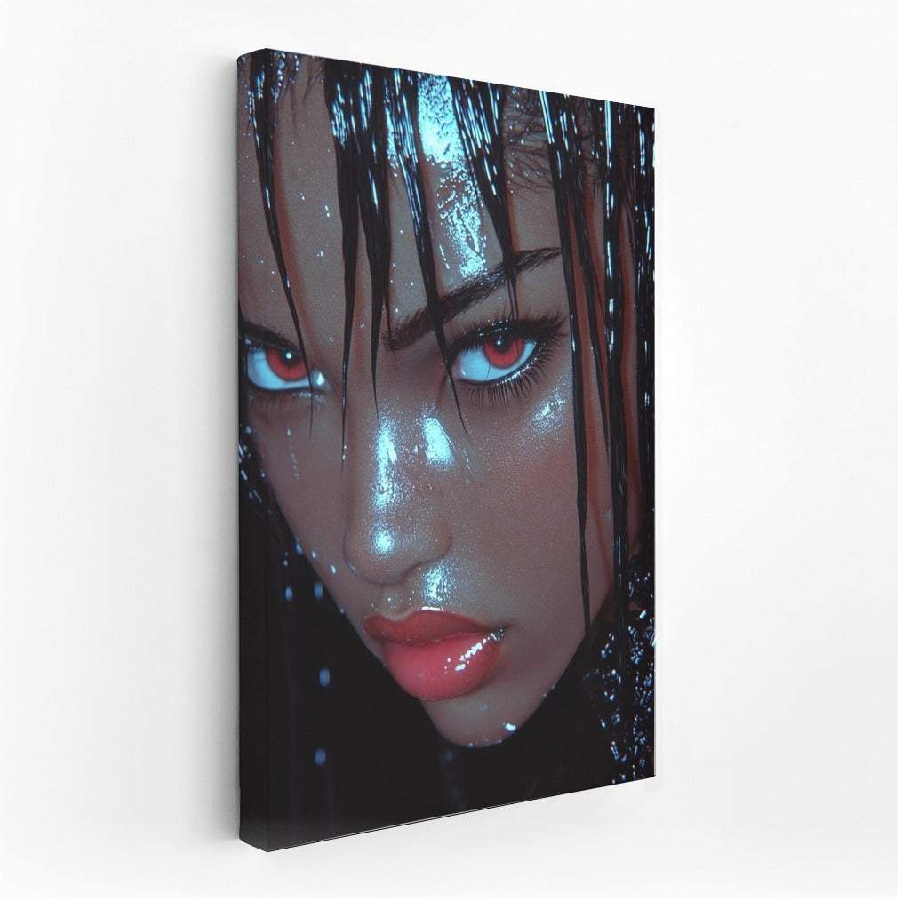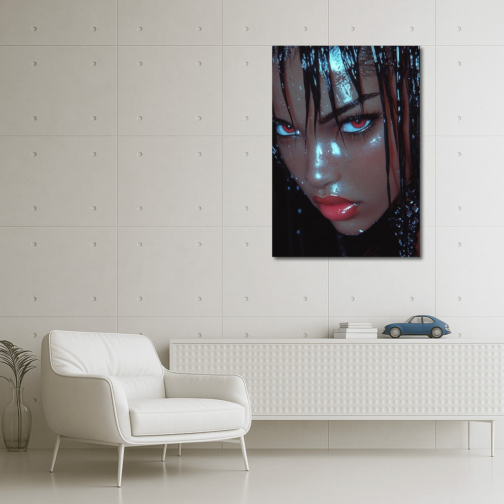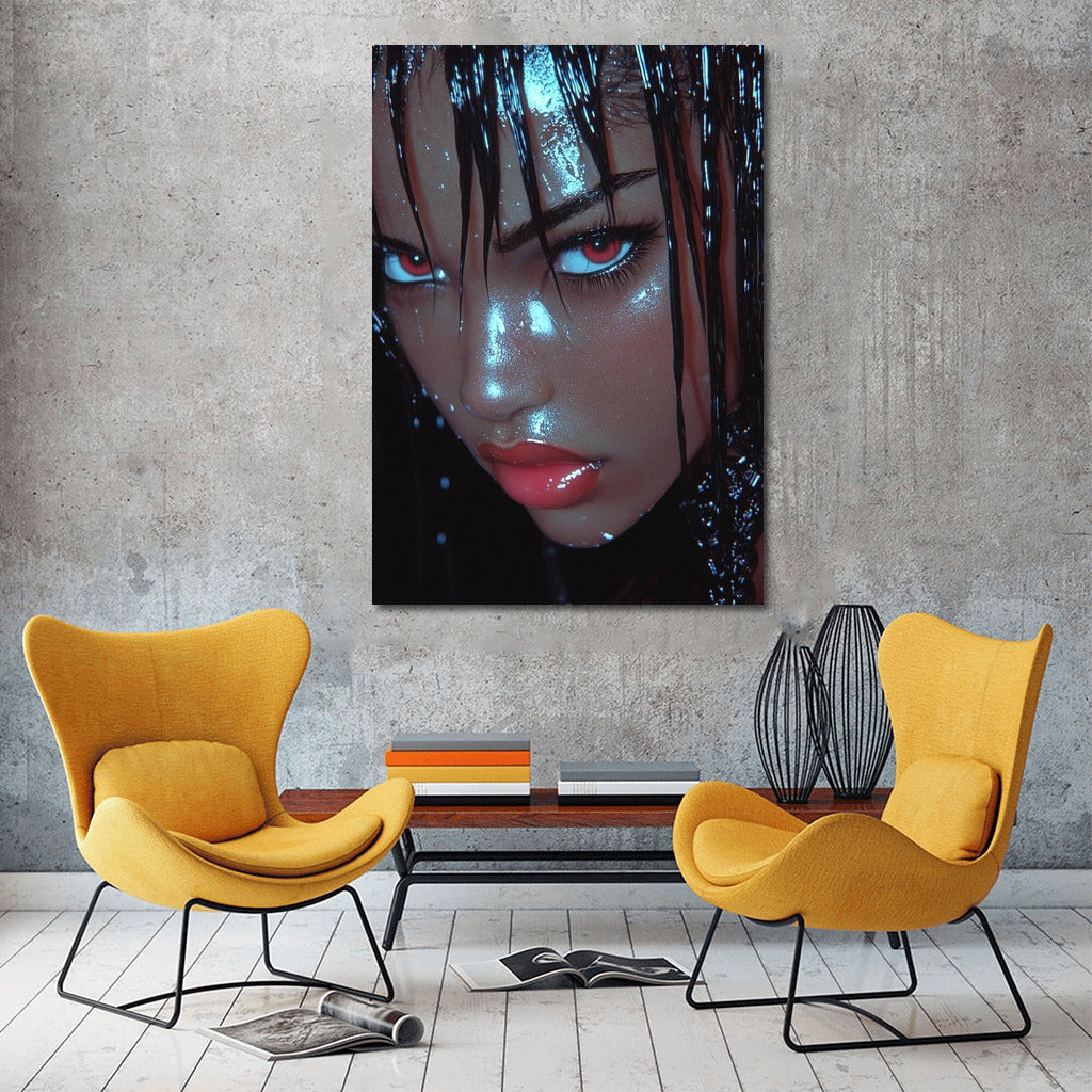 The image of a mysterious girl on a poster comes to life, capturing the play of light and shadow. Wall art of the future. See more from the collection: Wall Art with Women