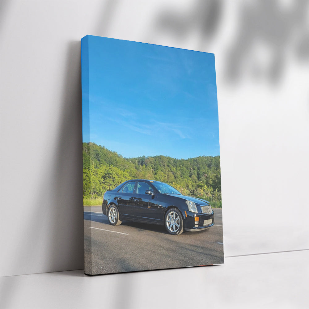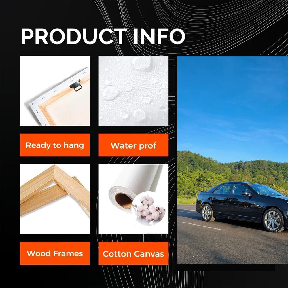 This poster is a blast! A black Cadillac in the wild is not just a painting, but a real wall art for those who appreciate speed and style. A legend on wheels, this shot excites the blood and makes you want to take a ride with the wind in your hair. See more from the collection: Cadillac Art