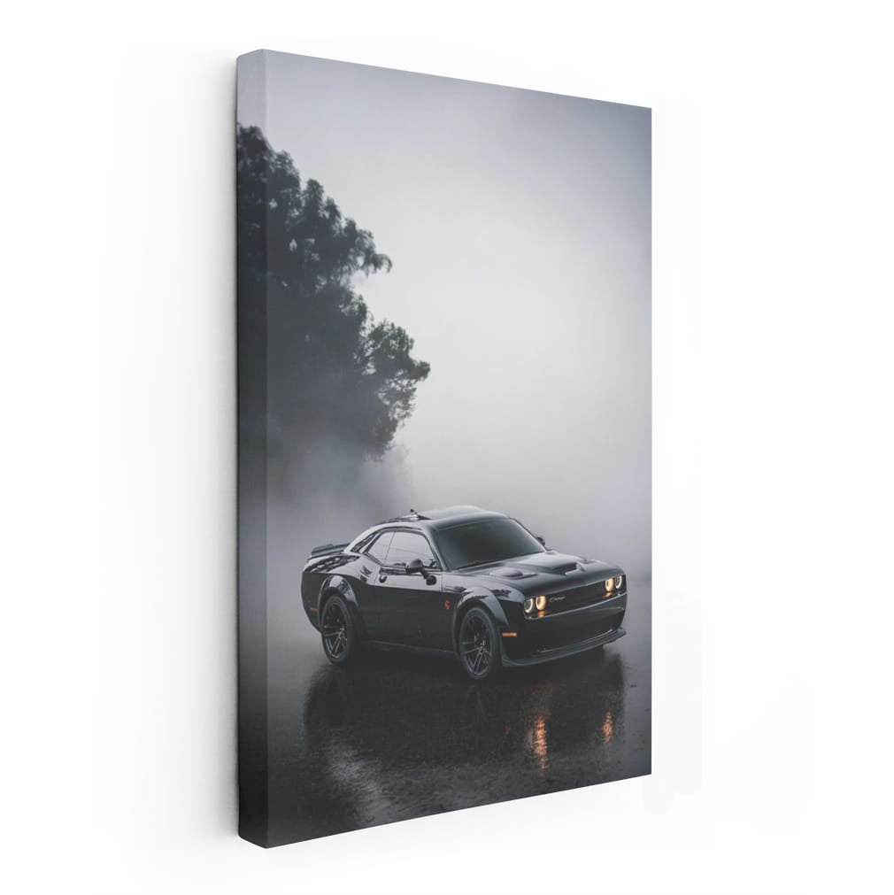 Black Dodge in Fog - Sleek and Mysterious Ride Wall Art